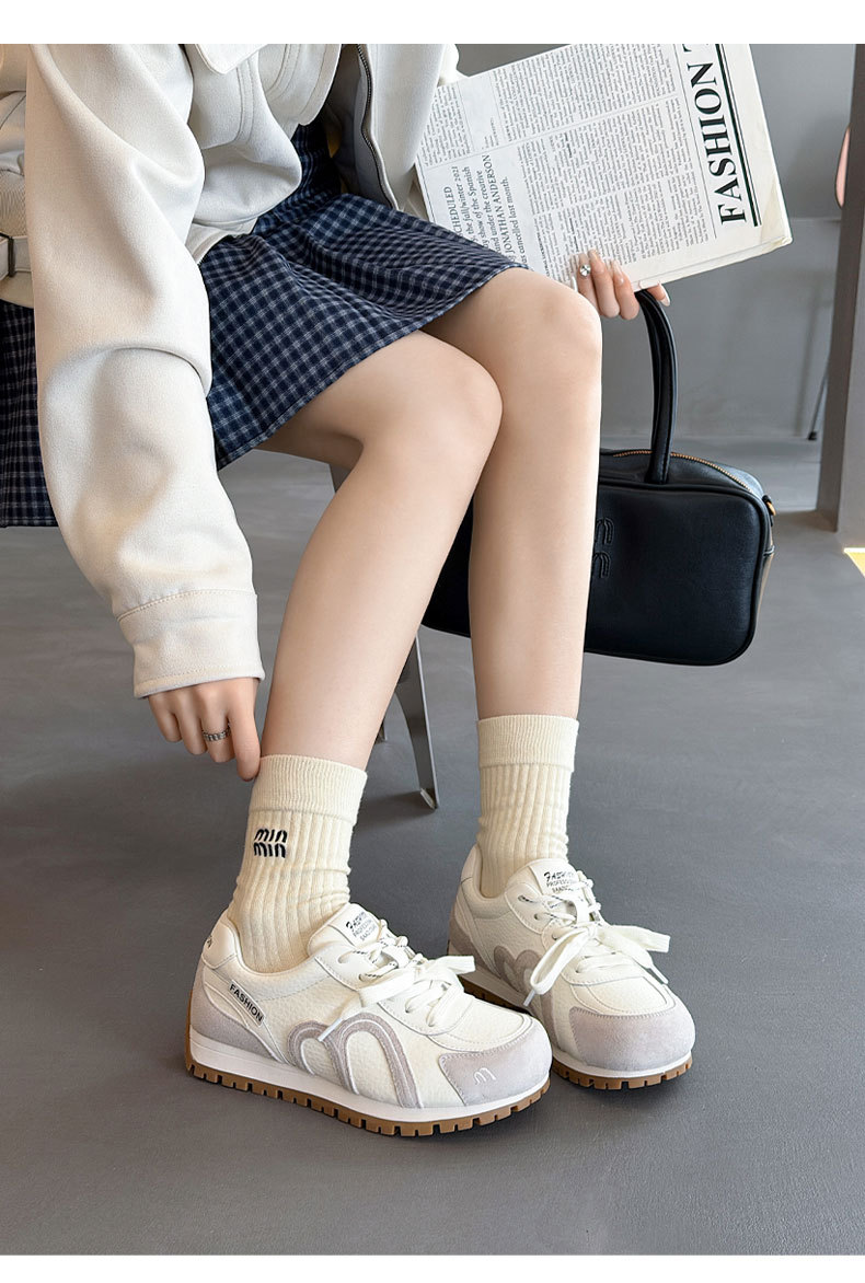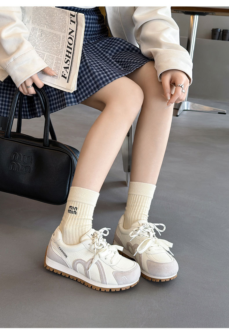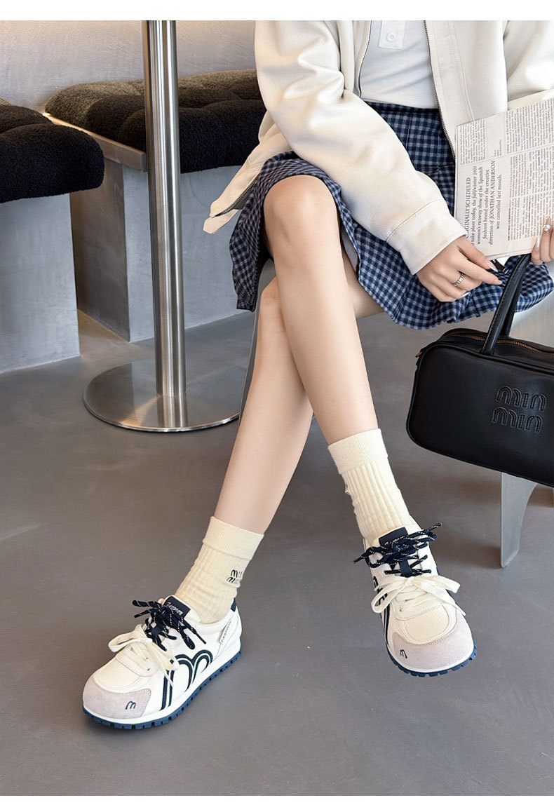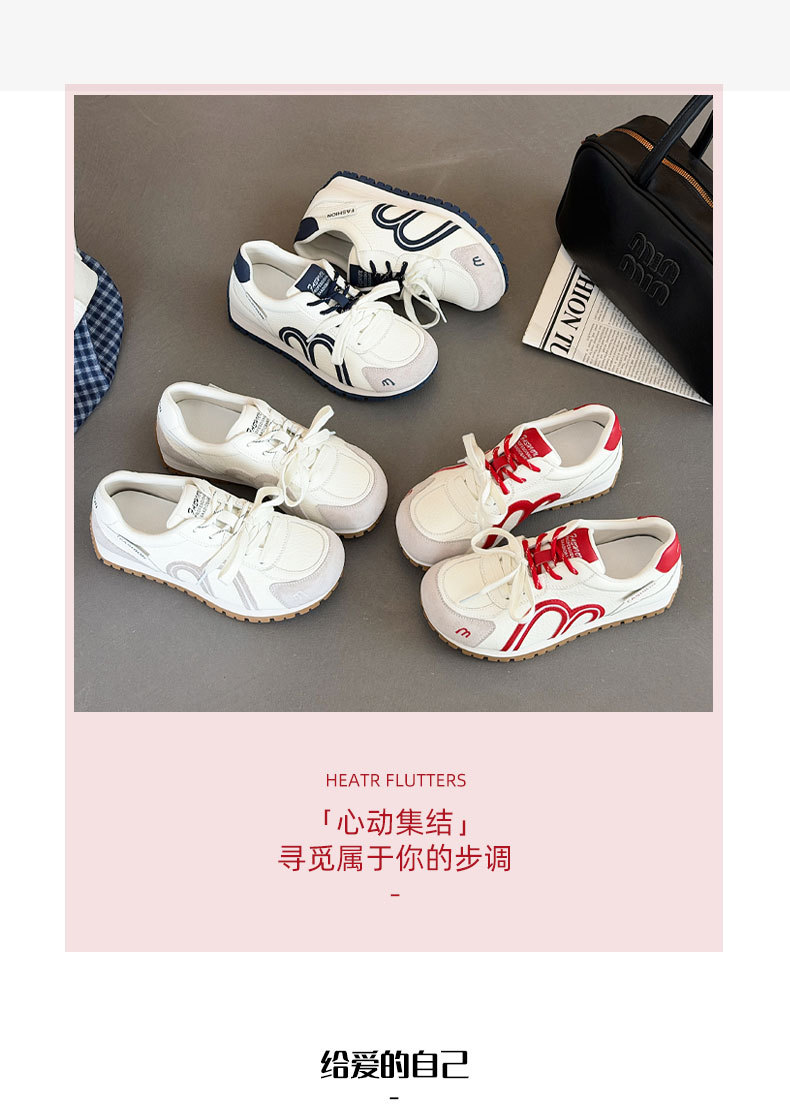 真皮德训鞋女2026春季新款圆头厚底系带透气舒适休闲运动跑步鞋潮