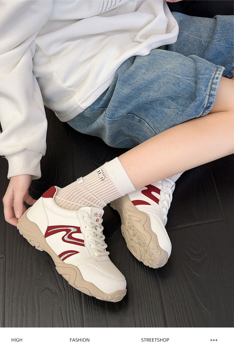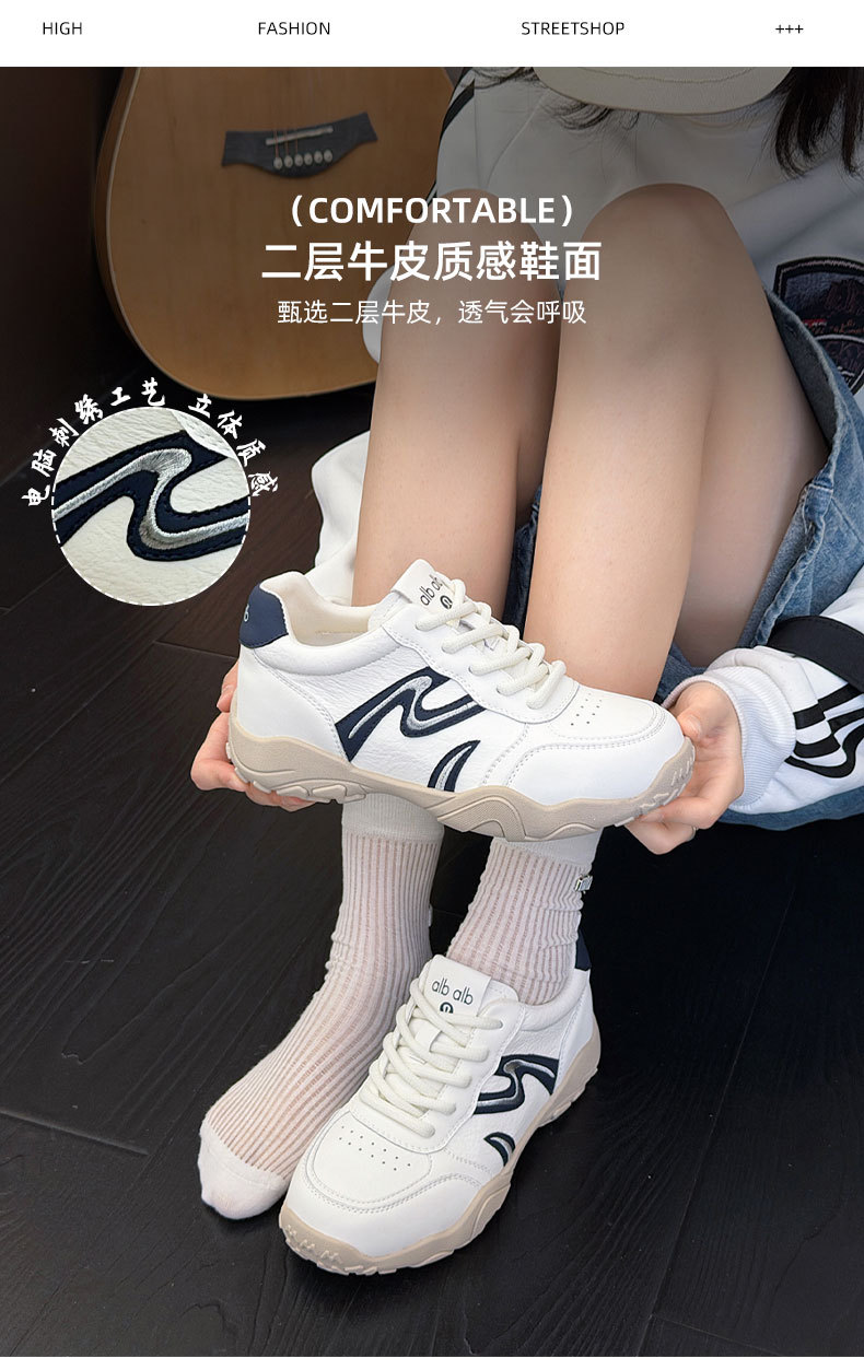 2026春季新款刺绣德训鞋女厚底内增高休闲鞋软底久站不累脚运动鞋