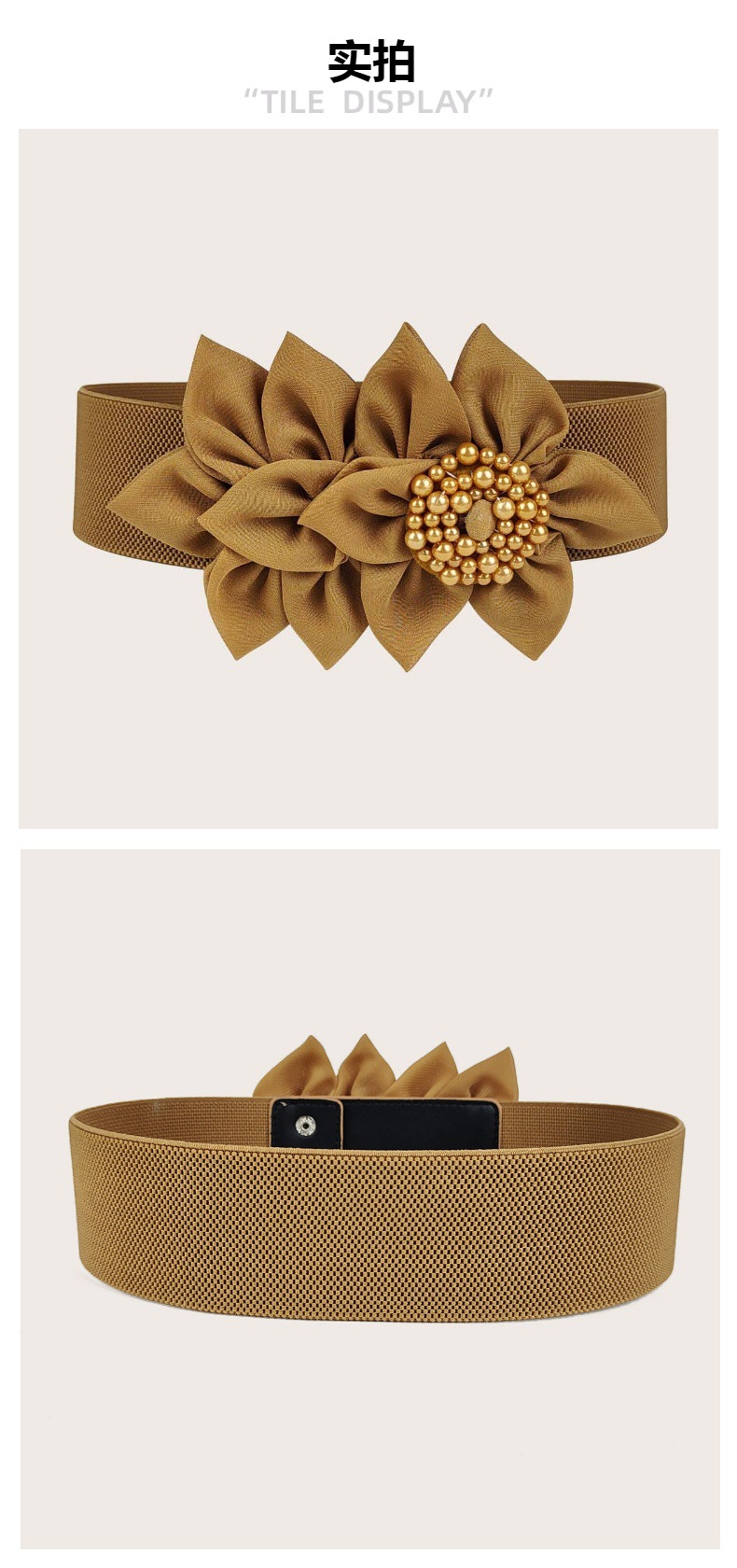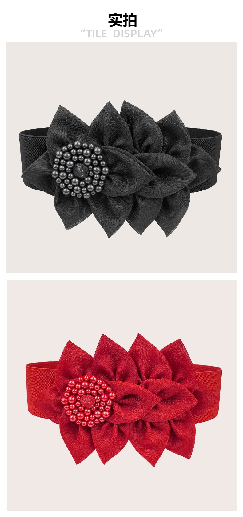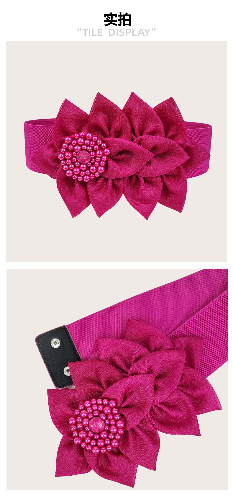 탄성 탄성 벨트 여자의 한국식 대형 꽃 장식 벨트 유행 모든 일치 와이드 웨이스트 씰 원피스 액세서리
