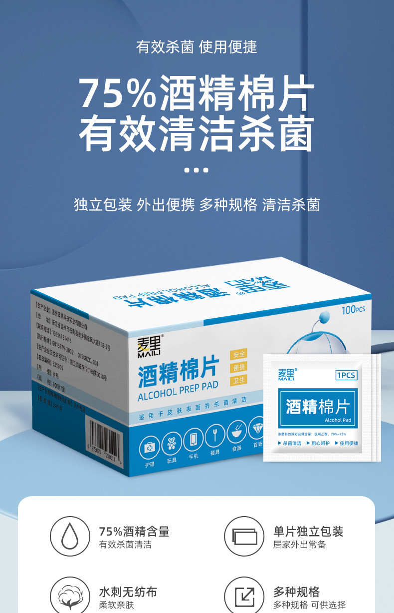 | 卫生许可证号 | 浙卫消证字(2022)第0121号 | 颜色分类 | 麦里100片(3*6cm)(非临床使用), 英文100片(3*6cm)【本产品为全英文仅供外贸公司出口看样】, 麦里50片(3*6cm)(非临床使用), 麦里酒精棉片3*6(102片)(非临床使用), 英文50片(3*6cm)【本产品为全英文仅供外贸公司出口看样】, 英文100片(6*6cm)【本产品为全英文仅供外贸公司出口看样】, 麦里100片(6*6cm)(非临床使用), 英文3*6cm(100+2片)袋装【本产品为全英文仅供外贸公司出口看样】, melly袋装英文3*6cm, 英文20片(15*20cm)【本产品为全英文仅供外贸公司出口看样】, 英文3*3cm(25片)【本产品为全英文仅供外贸公司出口看样】 |