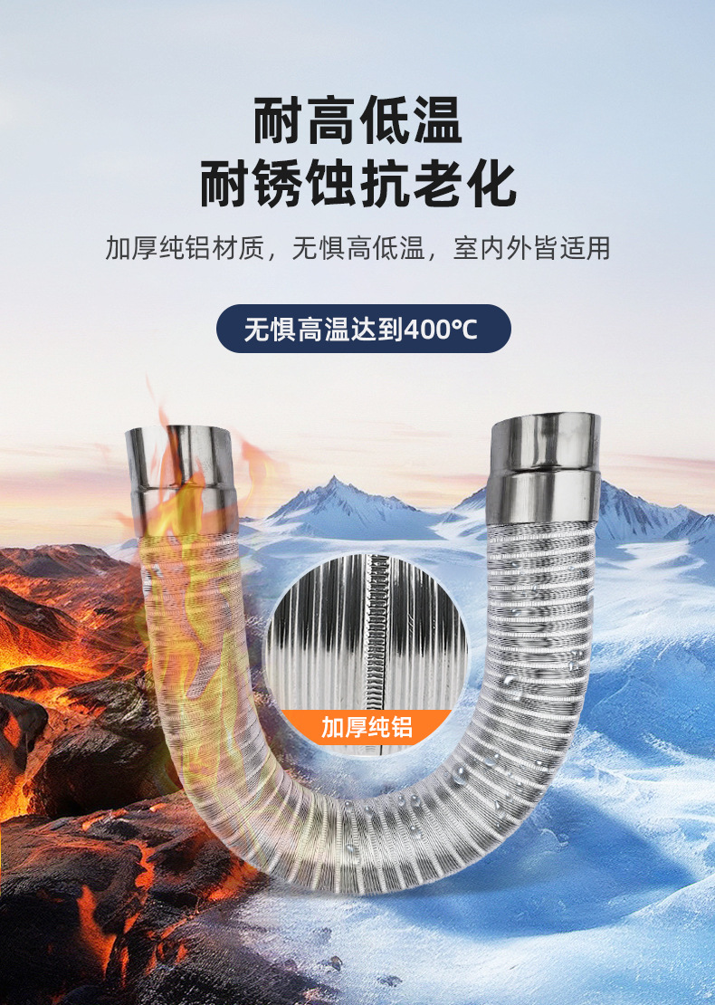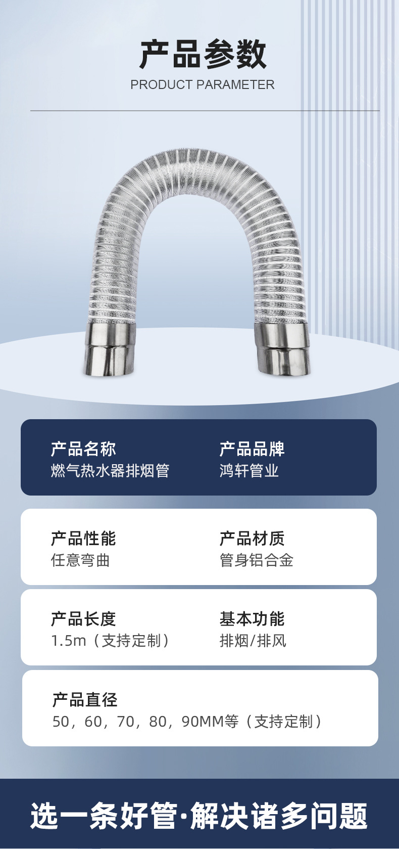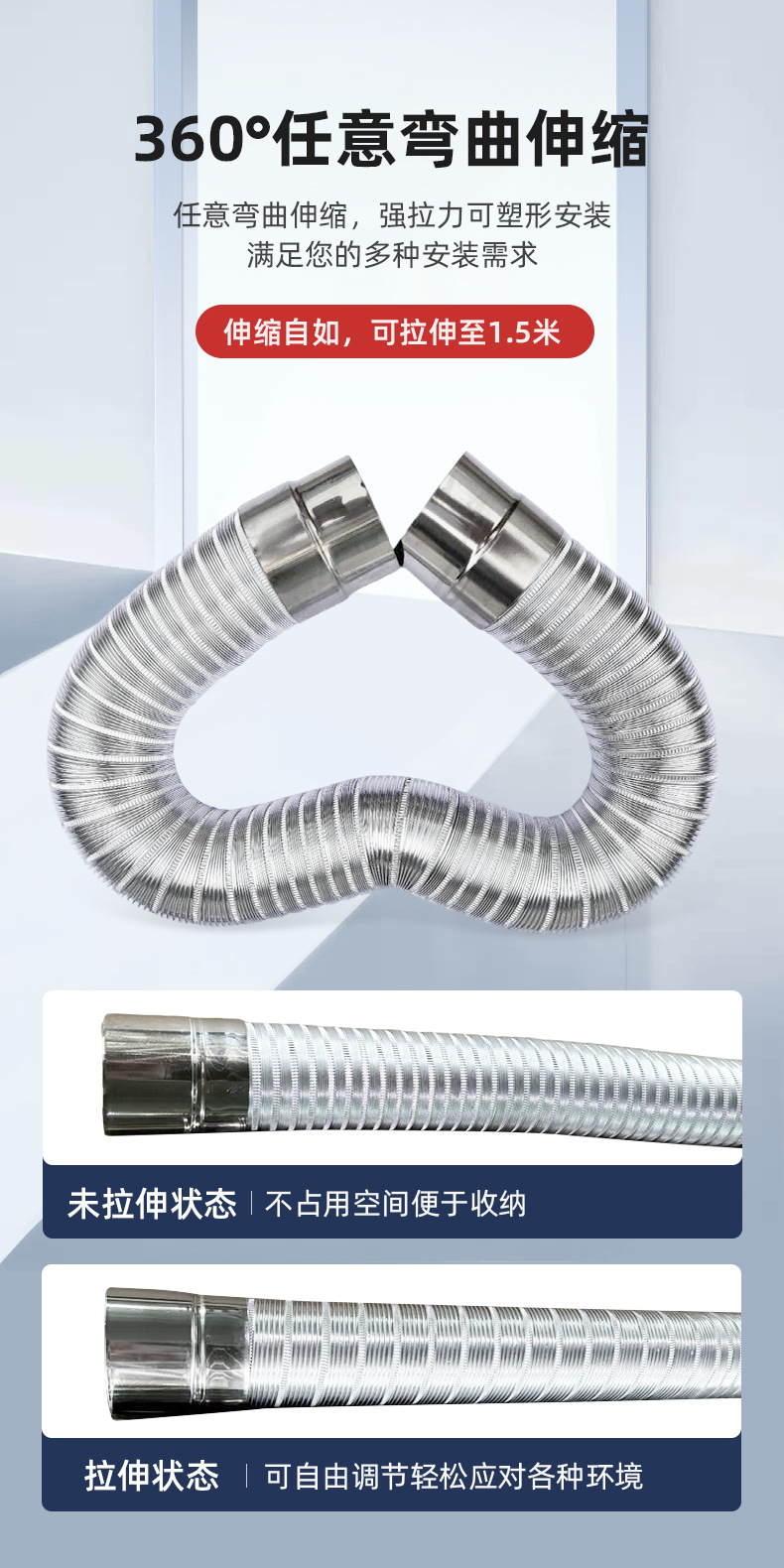 재고 도매 확장형 알루미늄 합금 가스 배기 파이프, 가스 온수기 배기 파이프, 연장용 연통 소프트 튜브