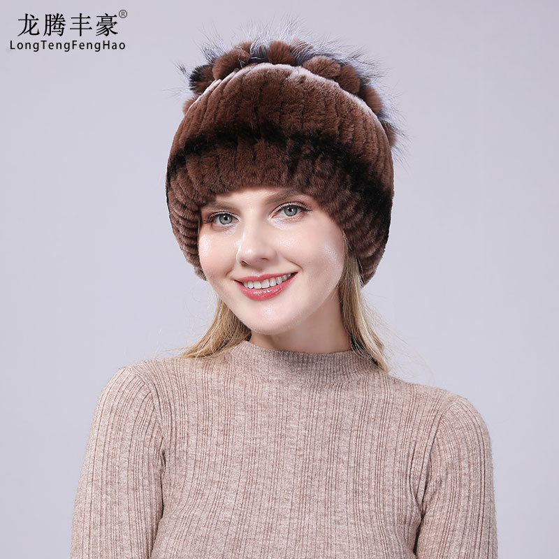 대외 무역 새로운 렉스 토끼 모피 모자 여성의 겨울 두꺼운 따뜻한 패션 올 매치 탄성 모피 꼰 손으로 꿰매는 니트 모자
