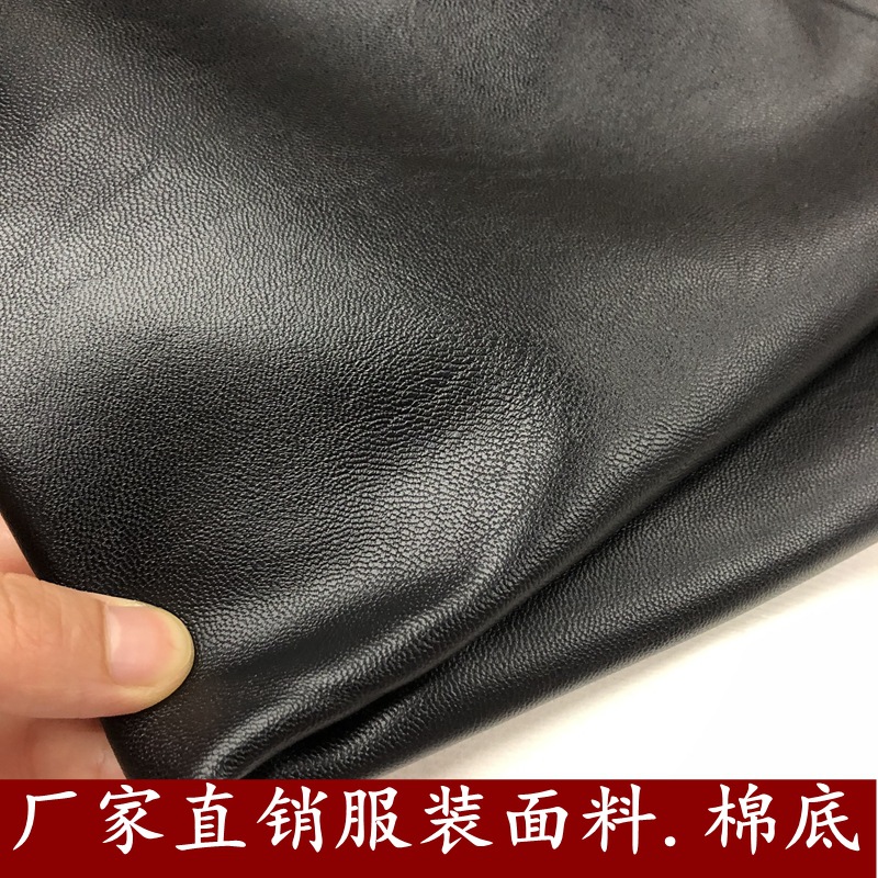 优质TC棉布底羊皮纹PU皮服装面料。