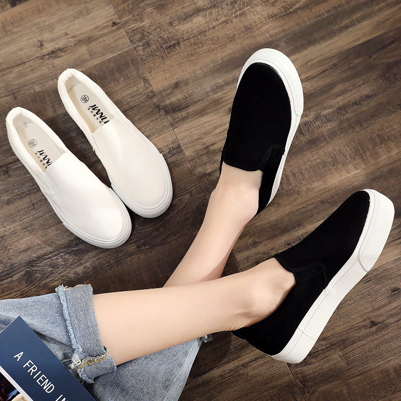 가을 두꺼운 밑창 캔버스 신발 여성용 작은 흰색 신발 머핀 세트 발 한 단계 높이 캐주얼 신발 신발 끈이없는 단색 흰색 신발