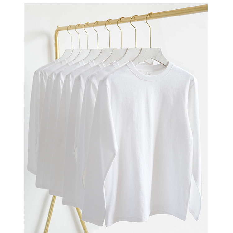 220g 무거운 면 긴 소매 티셔츠 느슨한 단색 탑 화이트 티셔츠 베이스 셔츠 두꺼운 남성 및 여성 티셔츠