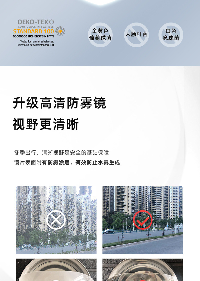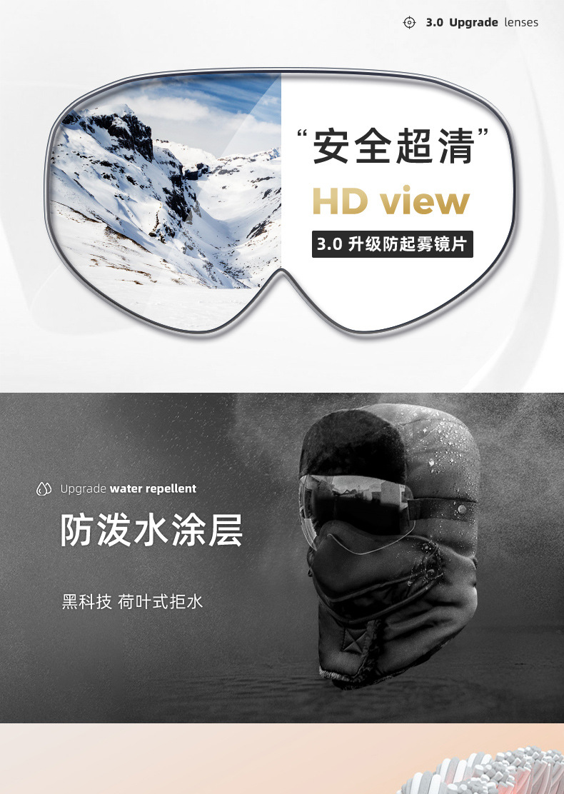 | 尺码 | 【无镜片】, 高清防雾镜片【只需6元】 | 功能 | 护颈, 透气, 保暖 |