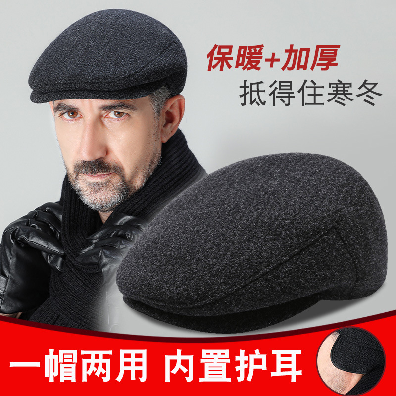 중년 및 노인 야외 레저 사이클링 노인 베레모 가을과 겨울 두꺼운 귀 보호 앞 캡 따뜻한 면 캡