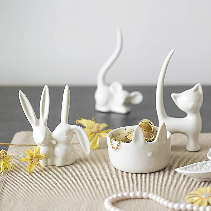 세라믹 흰 토끼 홈 장식 Bunsky 큰 귀 토끼 모스 마이크로 풍경 액세서리 세라믹 장식품