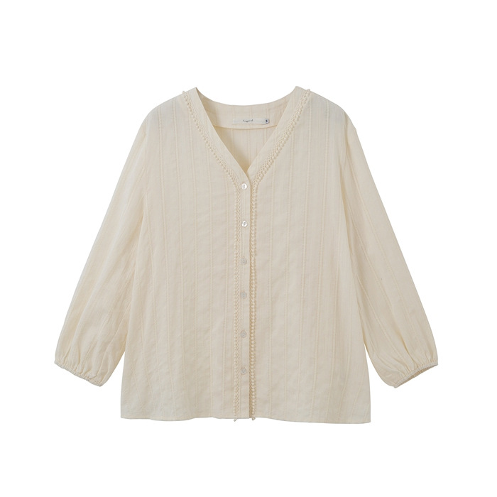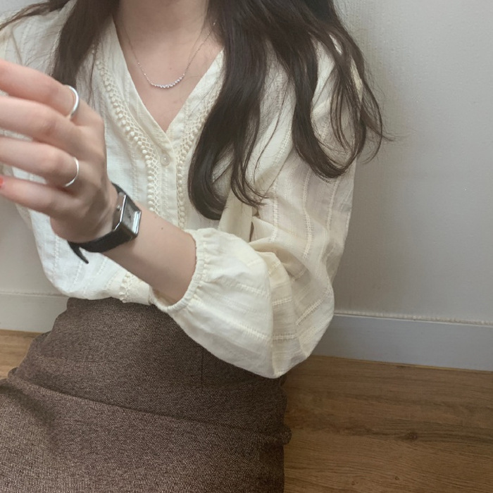 짧은 탑 코트 여성의 디자인 감각 틈새 프랑스 빛 성숙한 긴팔 V-넥 셔츠 레트로 모리 베이스 셔츠