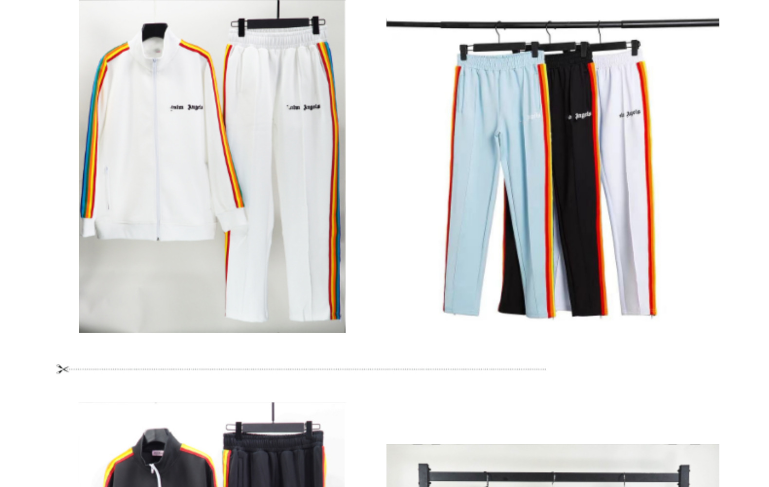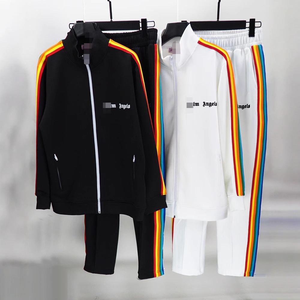 오른쪽 판 팜 엔젤 스트라이프 레인보우 팬츠 빈티지 캐주얼 스포츠 재킷 세트