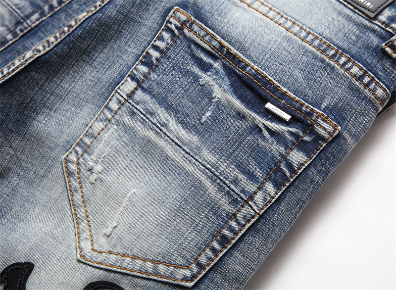 대외 무역 스타일 펑크 복고풍 블루 찢어진 슬림 스트레치 인쇄 인쇄 및 염색 작은 피트 남성 청바지 3093