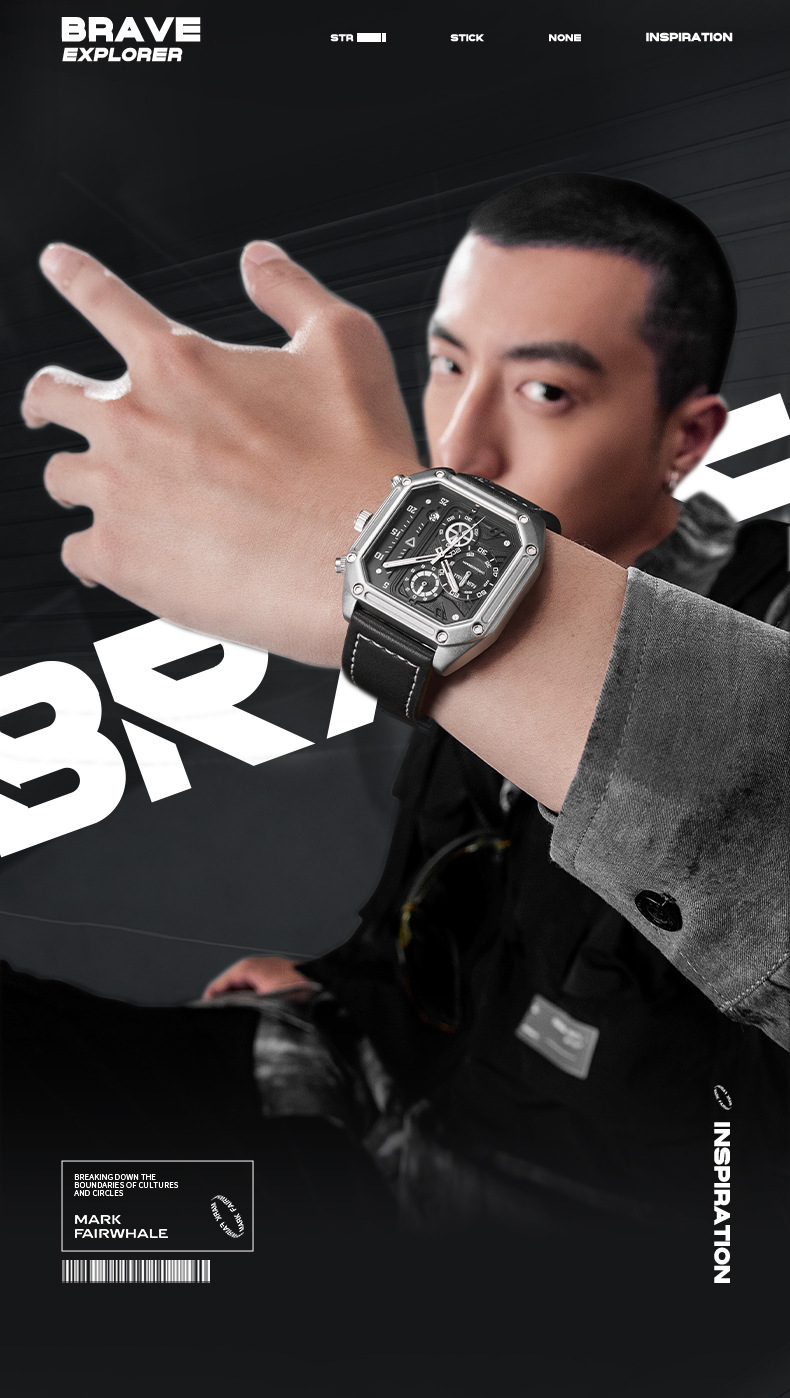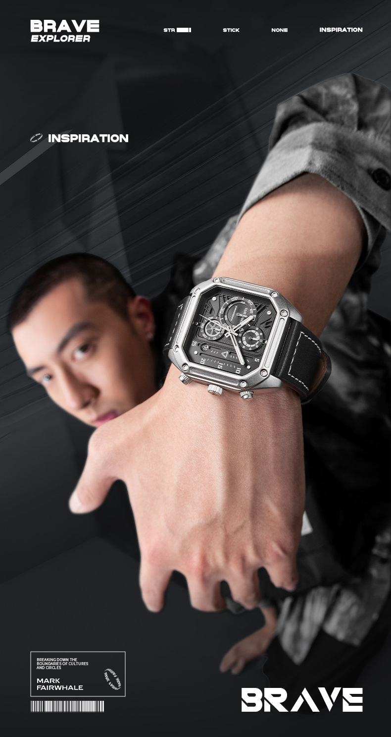 Mark Fairwhale 트렌디 브랜드 시계 남성 쿼츠 다기능 시계 럭셔리 시계