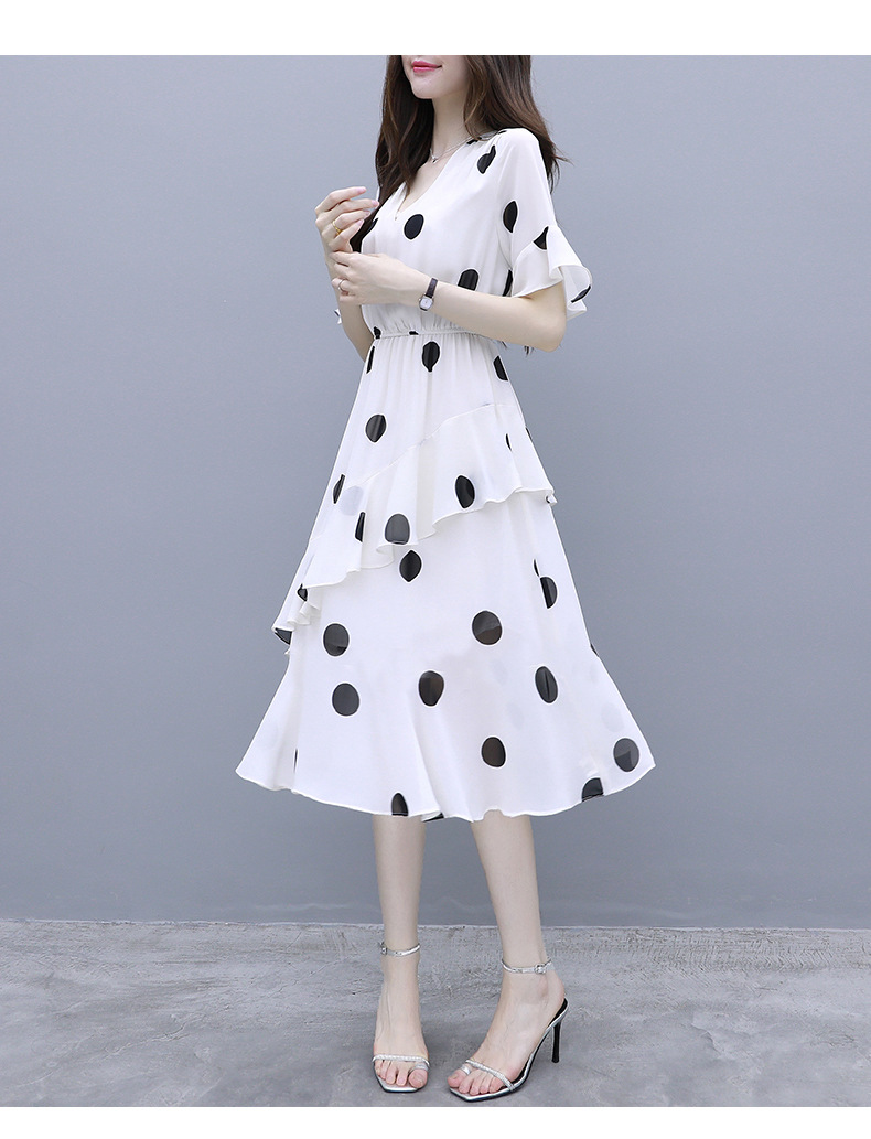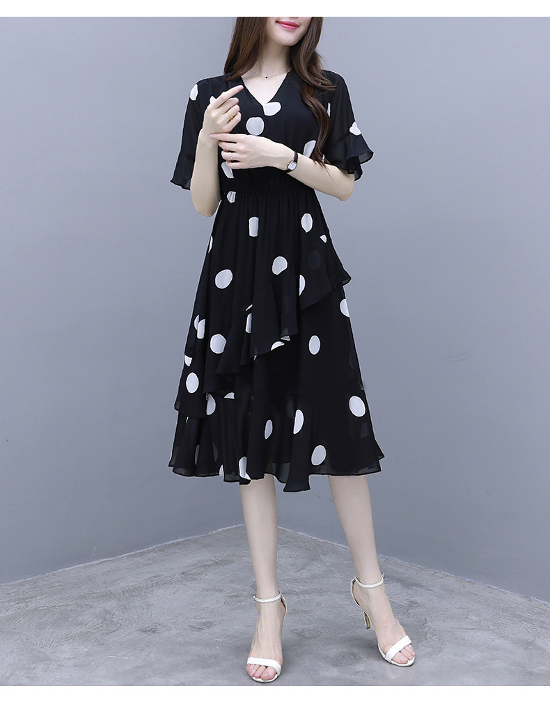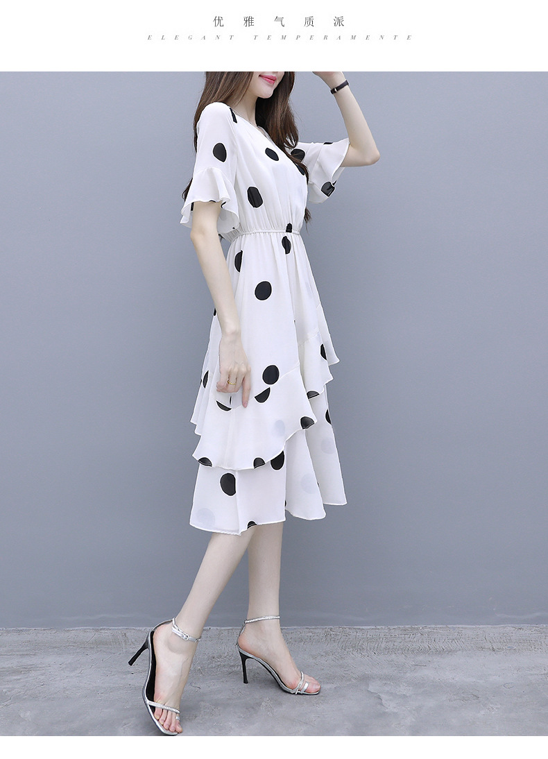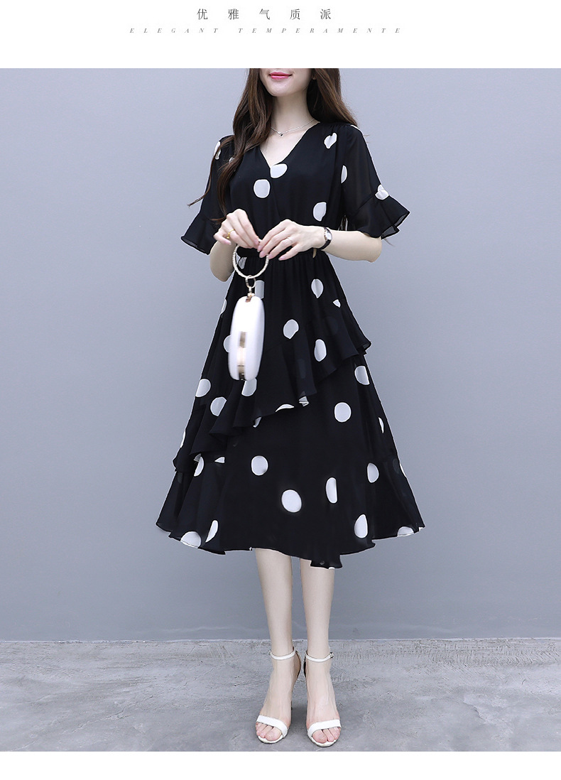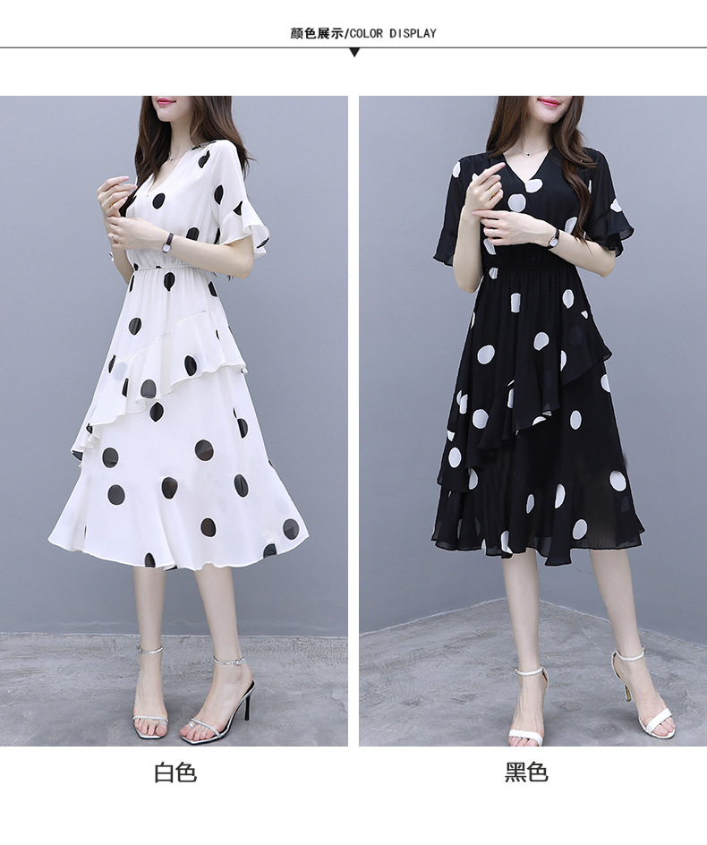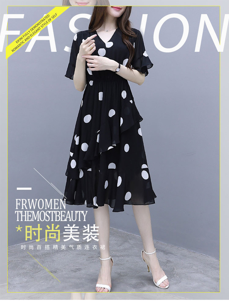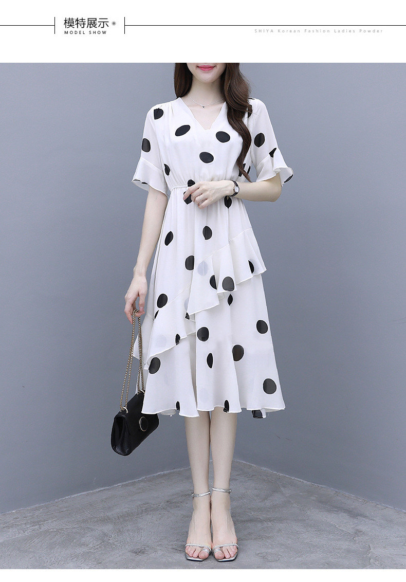 원피스 여성 19 여름 새로운 한국 스타일 통통녀 우아한 느슨한 슬리밍 배꼽 연령 감소 폴카 도트 플러스 사이즈