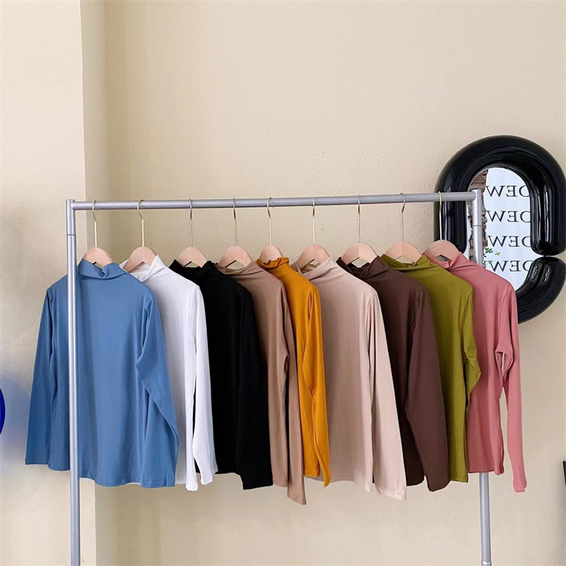 가을 겨울 여성용 9색 하프 터틀넥 밑단 셔츠, 피부 친화적인 누드 마스크 의류, 단색, 다용도, 고탄력, 슬림 긴팔 탑