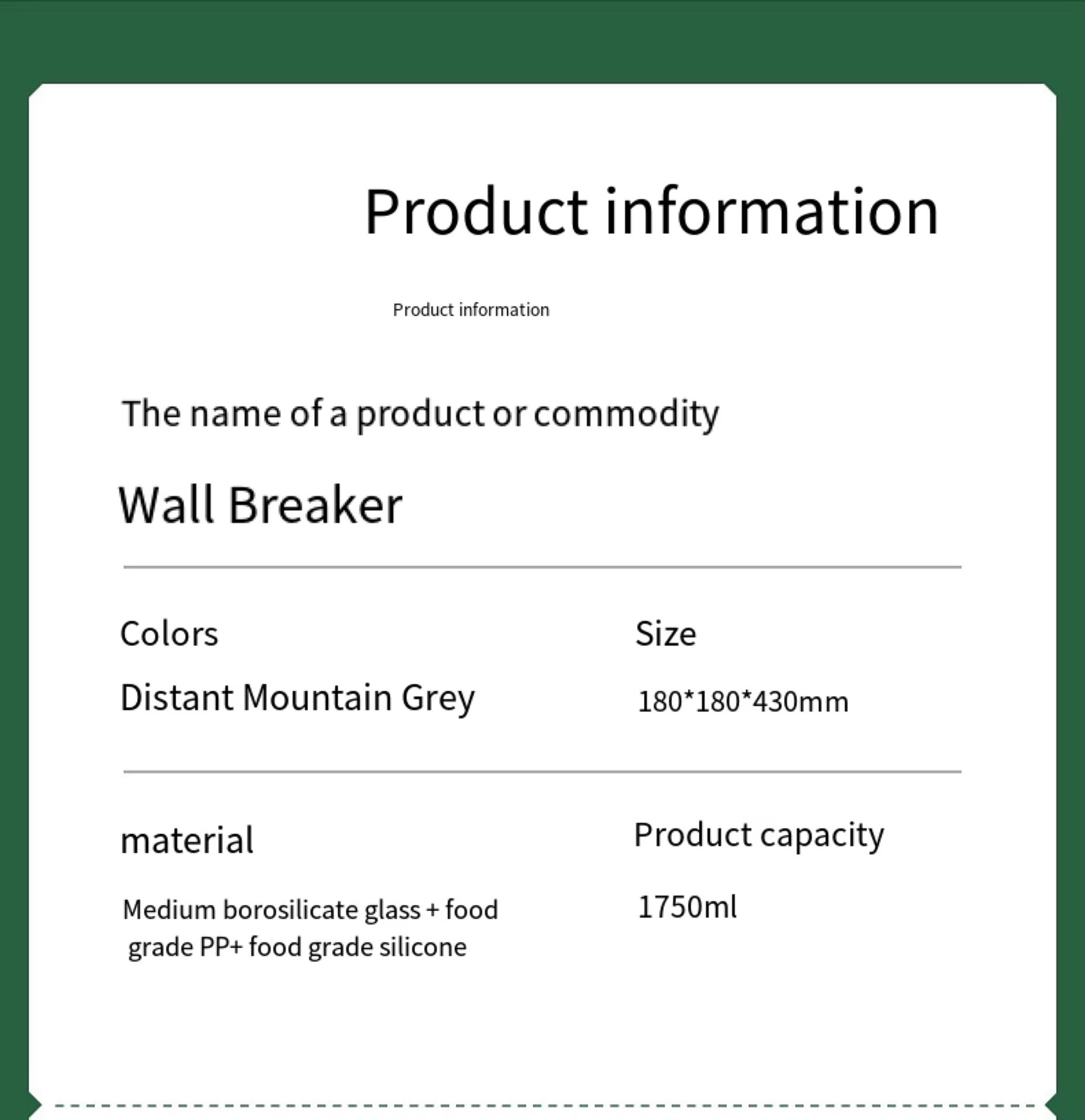 | 功能 | 保温, 营养辅食, 预约定时, 预约时间, APP智能控制, 破壁磨粉, 热烘除菌, 无需手洗, 预约温度, 快速出浆 | 容量 | 1.2L以上 |