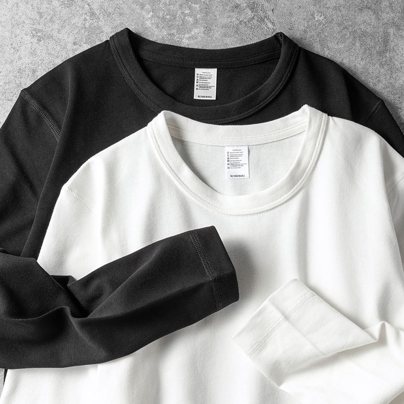 흑백 기본 420g 무거운 기모 기모 긴 소매 티셔츠 단색 가을과 겨울 인테리어 두꺼운 기본 셔츠