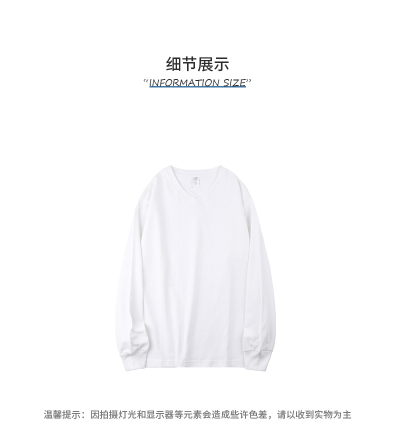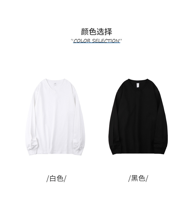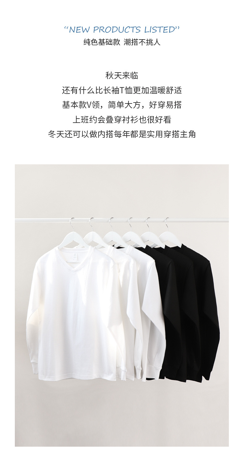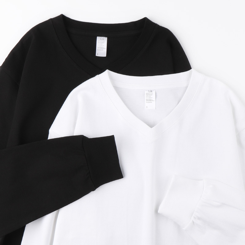 이른 가을 느슨한 두꺼운 조수가있는 250g 일본 무거운 V-넥 긴팔 남성과 여성의 기본 순백색 면 티셔츠