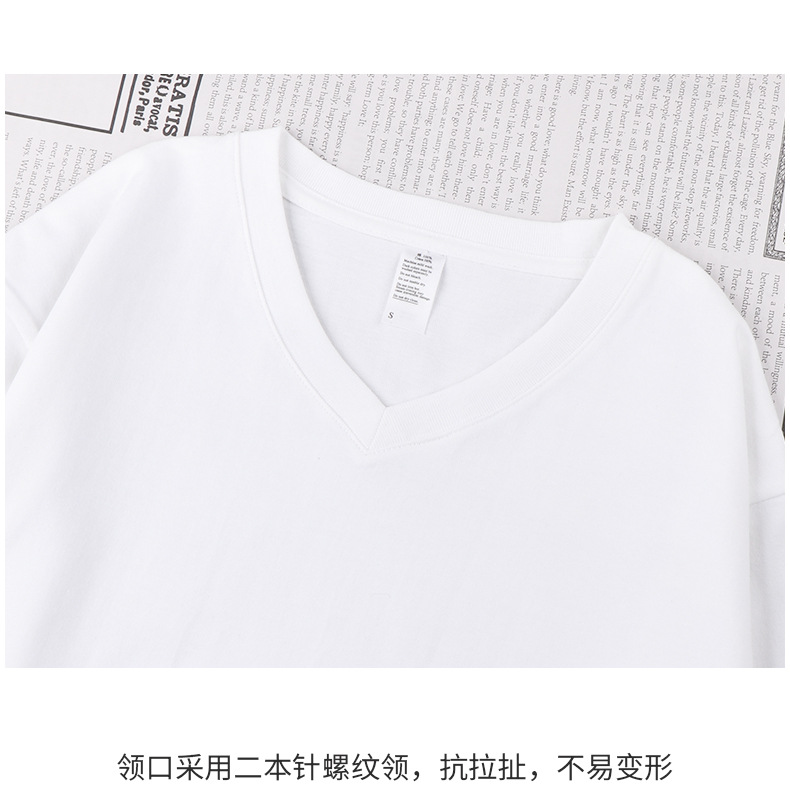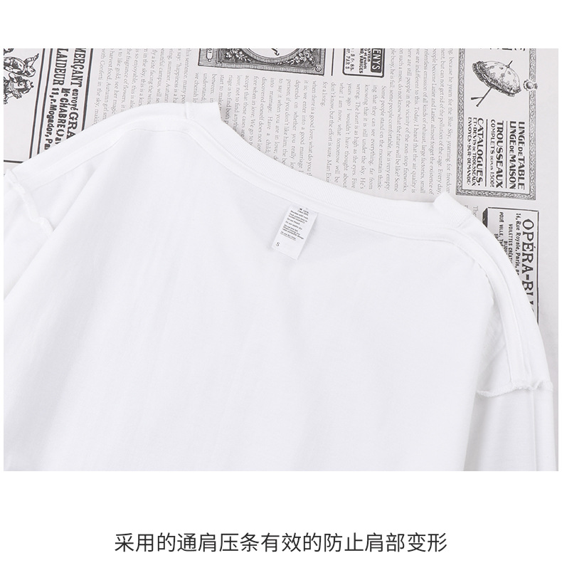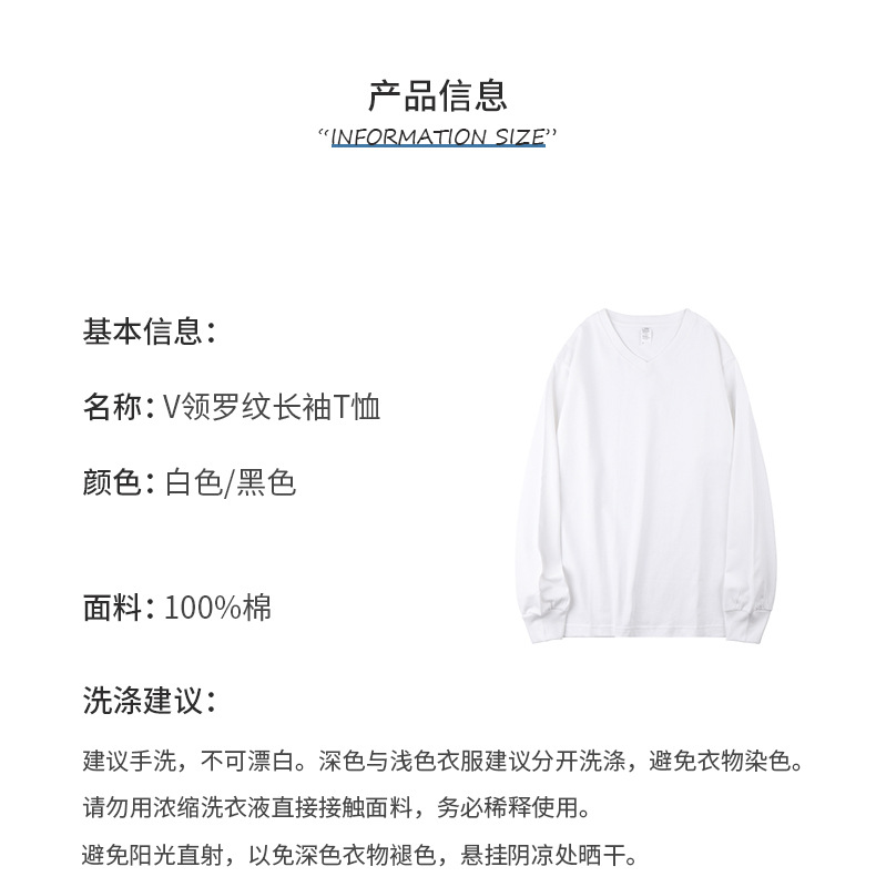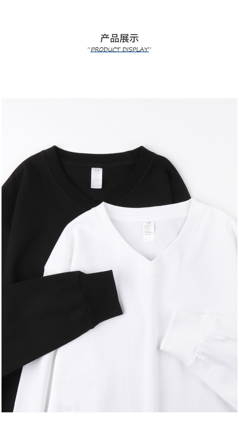 이른 가을 느슨한 두꺼운 조수가있는 250g 일본 무거운 V-넥 긴팔 남성과 여성의 기본 순백색 면 티셔츠