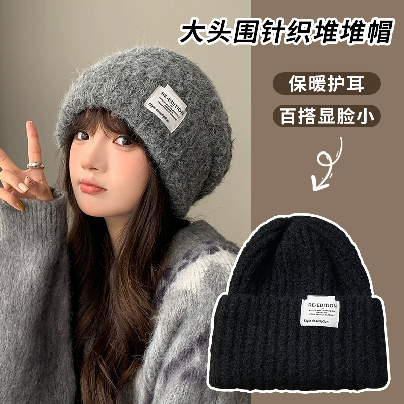 큰 머리둘레를 위한 여성용 가을 겨울 방한 귀덮개 니트 모자, 패셔너블하고 다용도로 활용 가능한 얼굴을 작아 보이게 하는 모직 모자