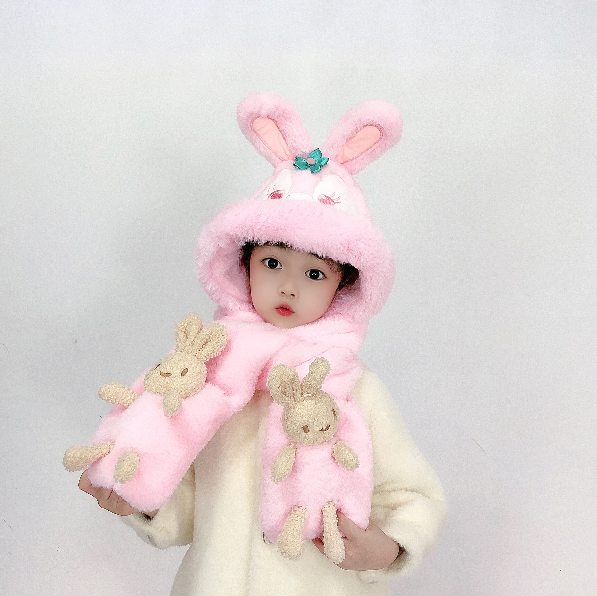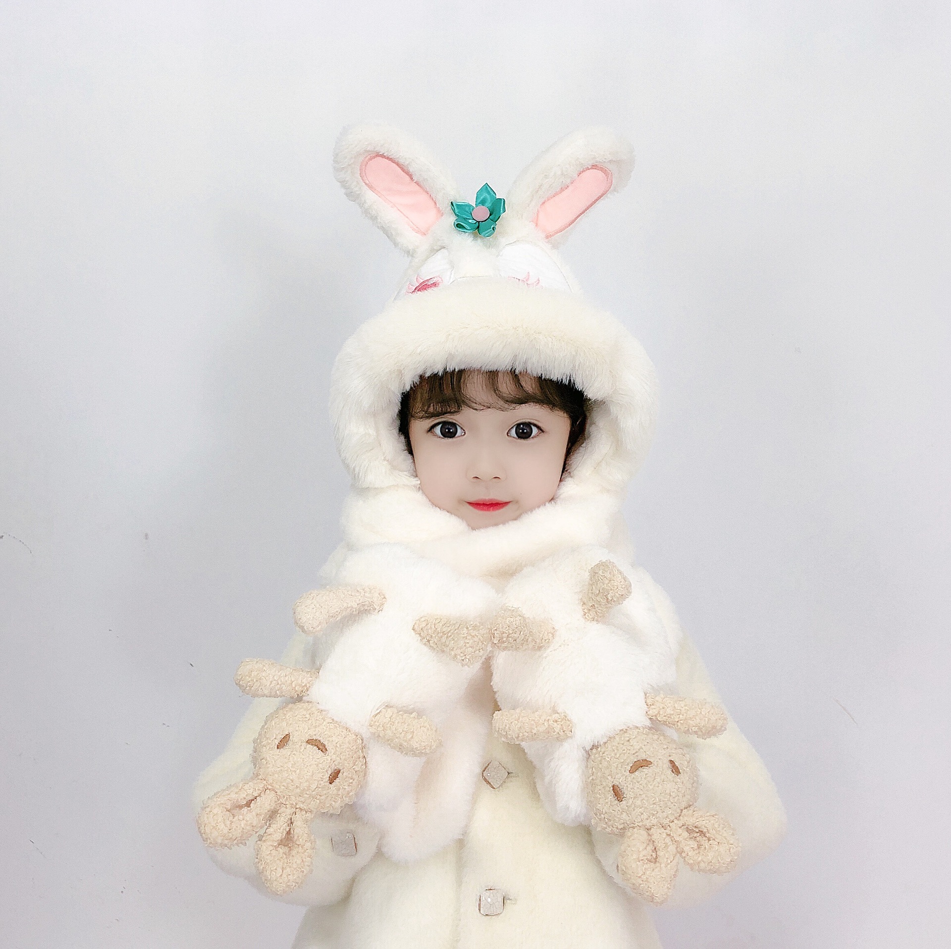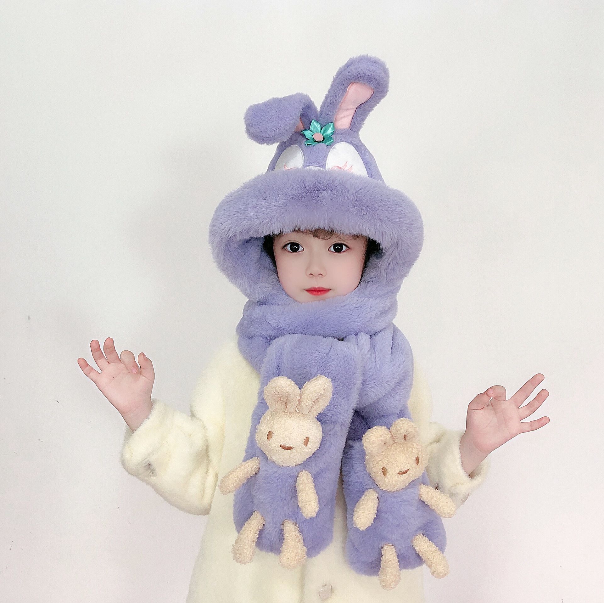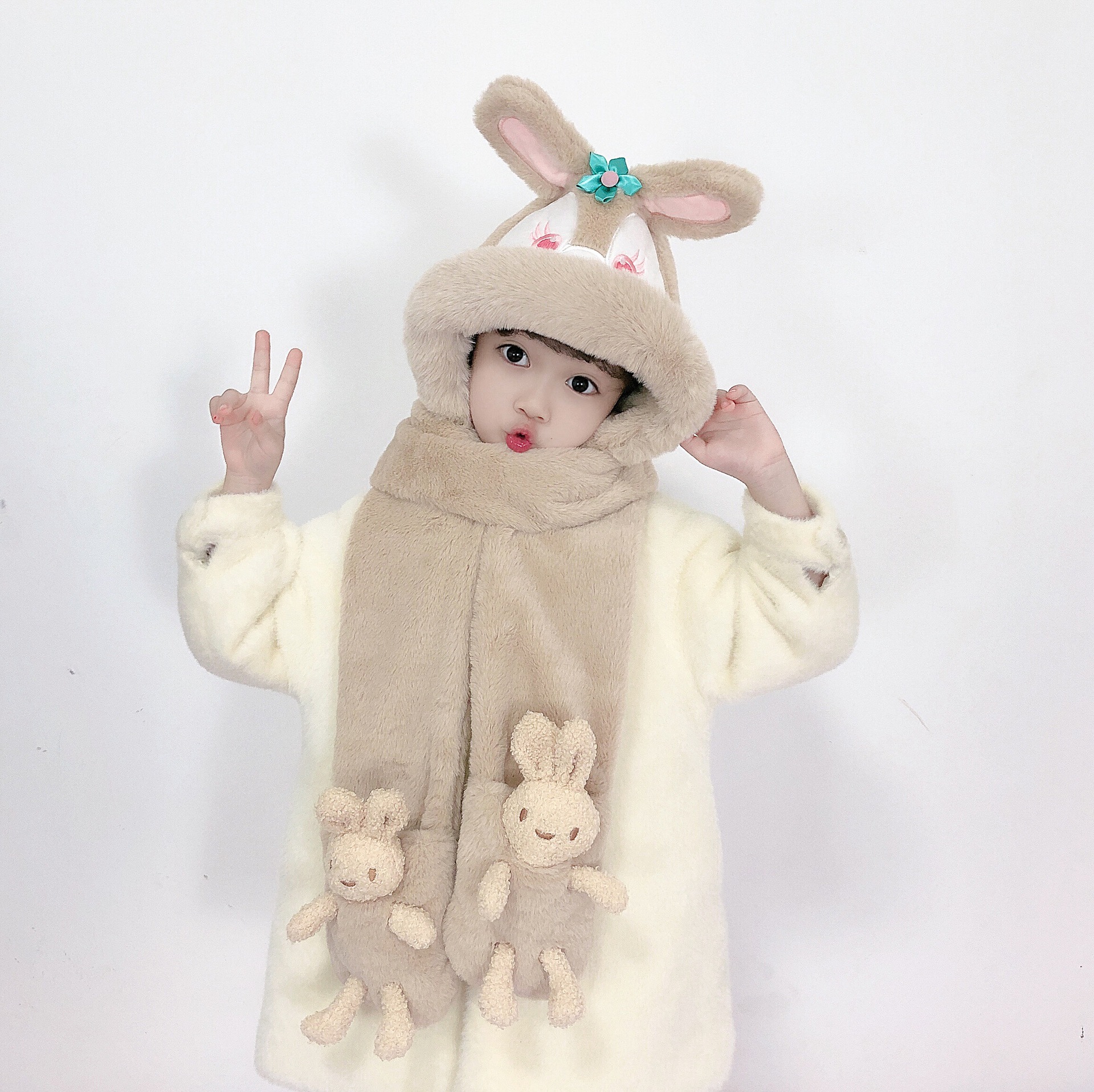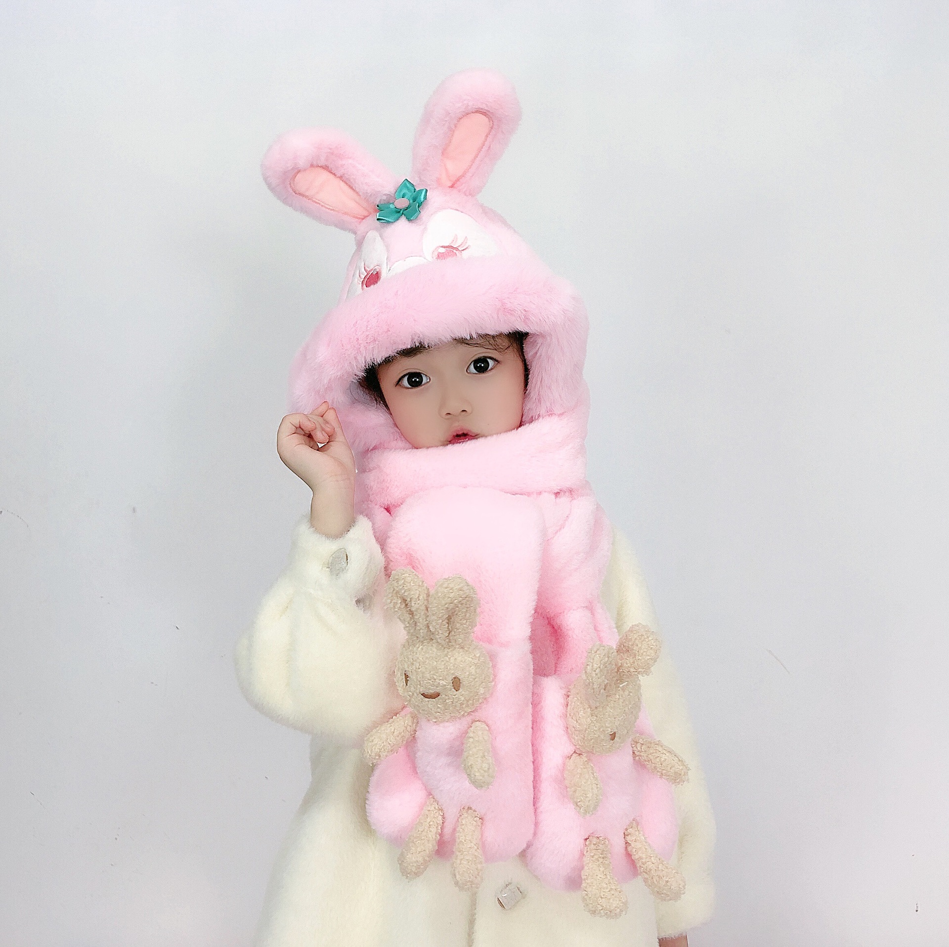 가을과 겨울 새로운 만화 토끼 귀 어린이 모자 여자 모자 스카프 장갑 3 피스 세트 두꺼운 원피스 모자