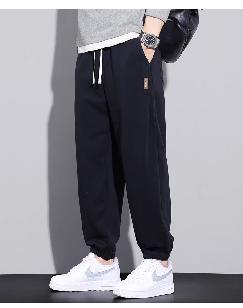 2025 신상 캐주얼 팬츠 남성용 스웨트팬츠 대형 사이즈 가을 겨울용 플리스 안감 남성용 바지 루즈핏 남성 스포츠 팬츠