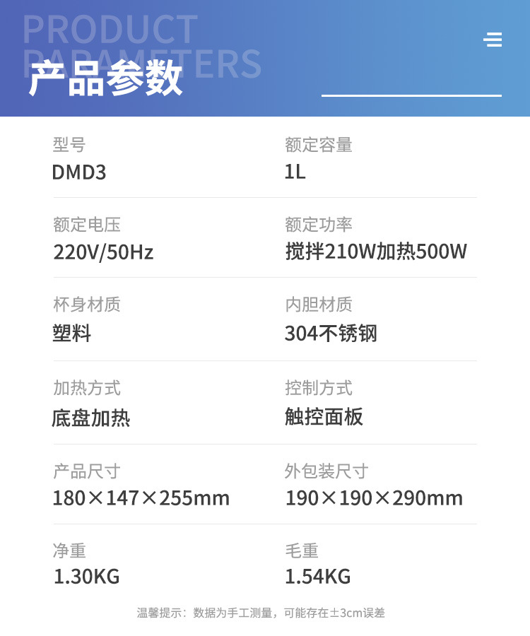 | 货号 | DMD3 | 豆浆机功能 | 其他 |