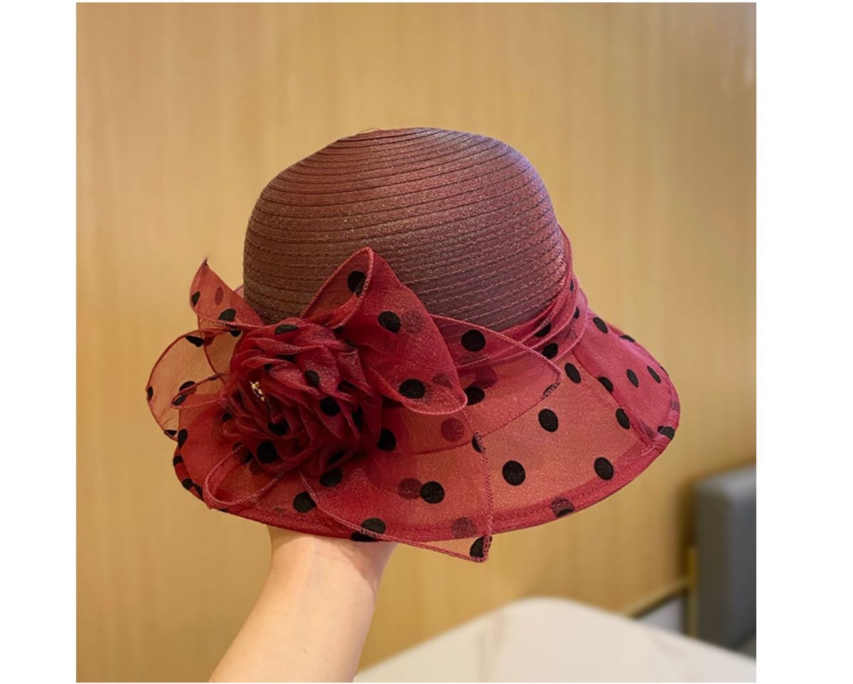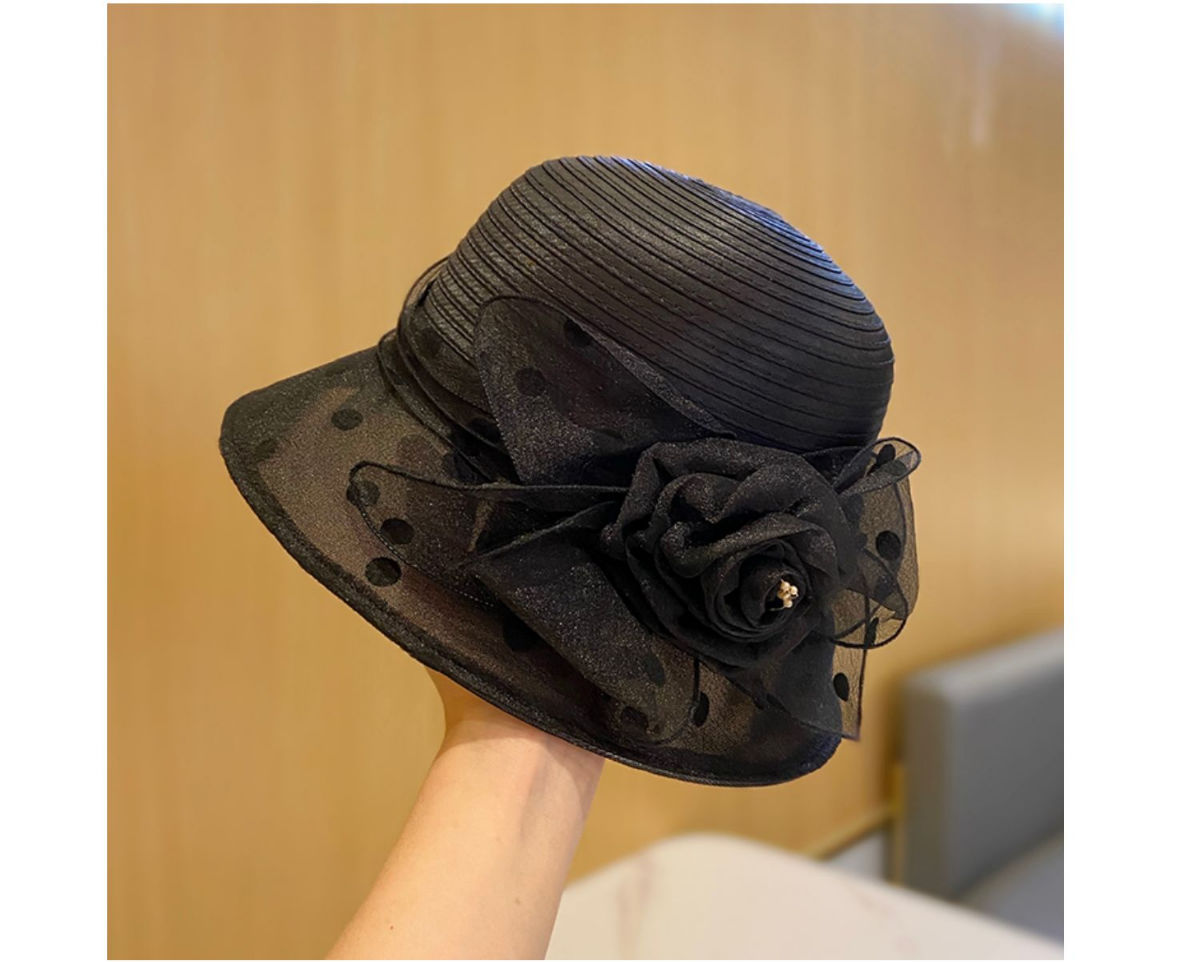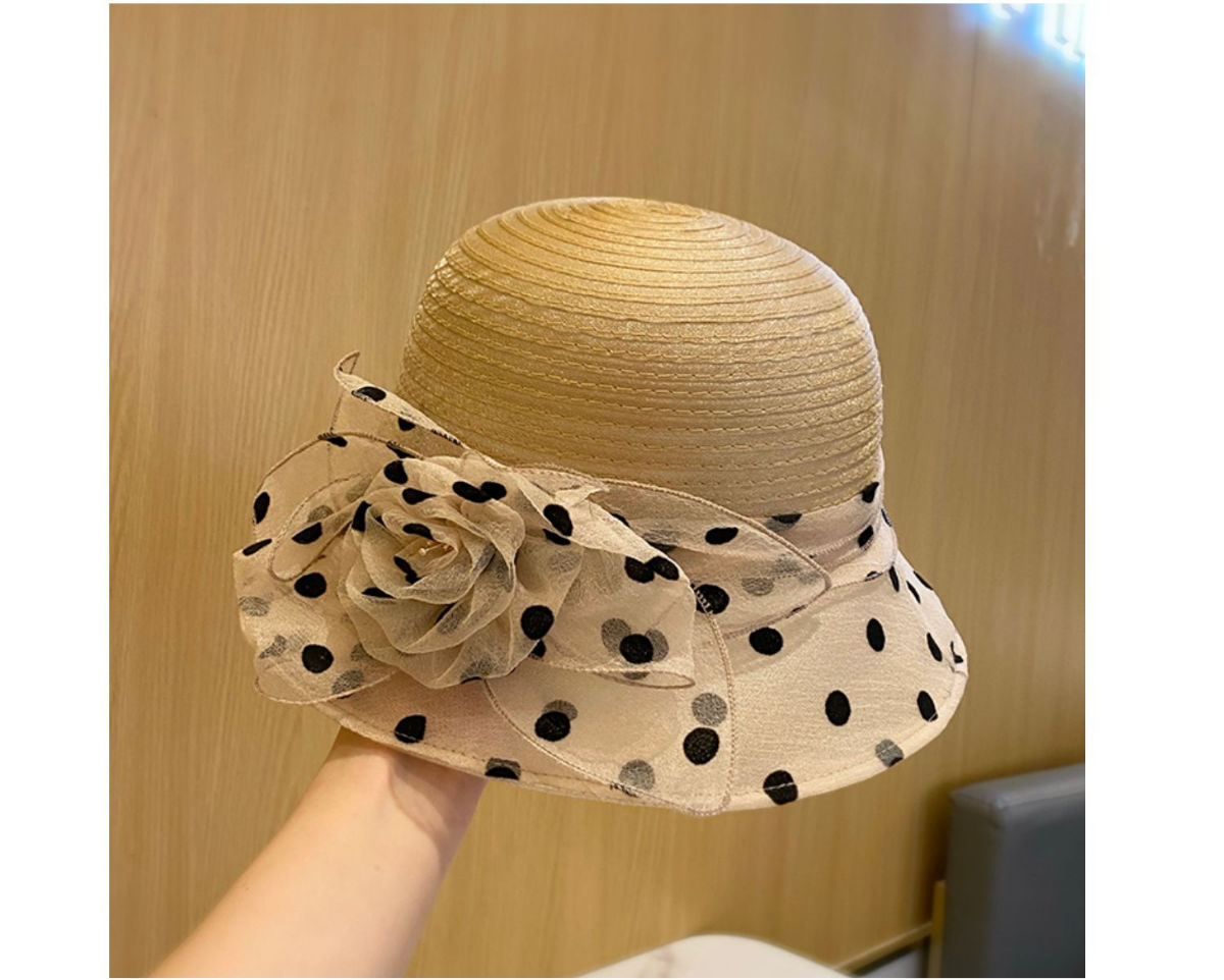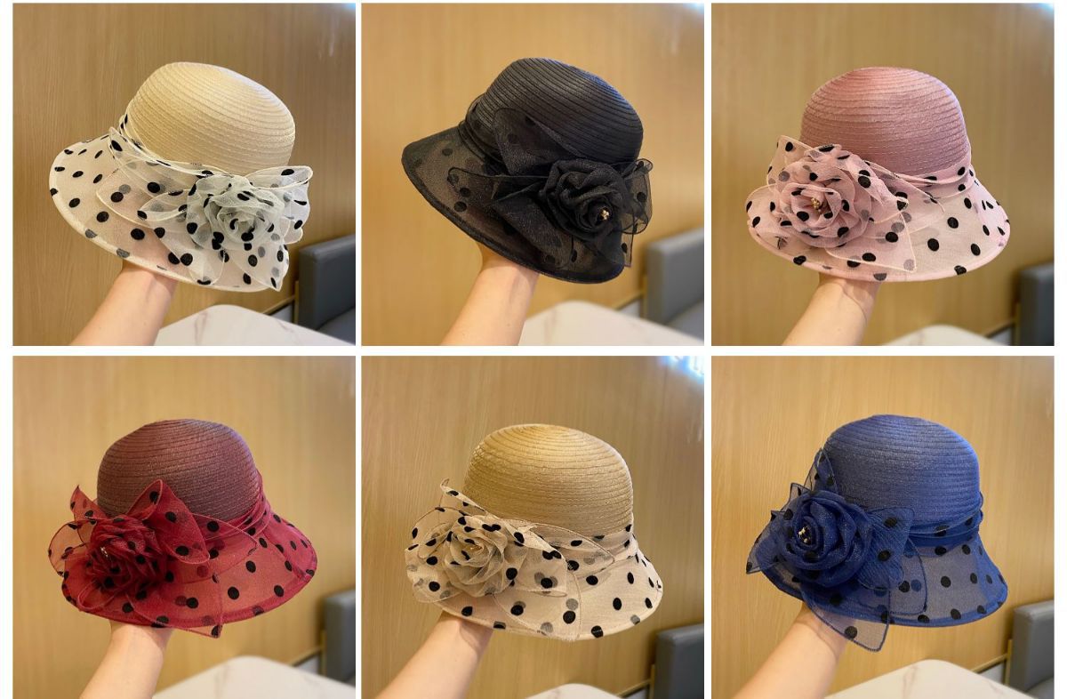 여름 새로운 스타일 오간자 모자 여성용 우아한 꽃 물방울 무늬 어부 모자 영국 통기성 모든 경기 프랑스 한국 스타일