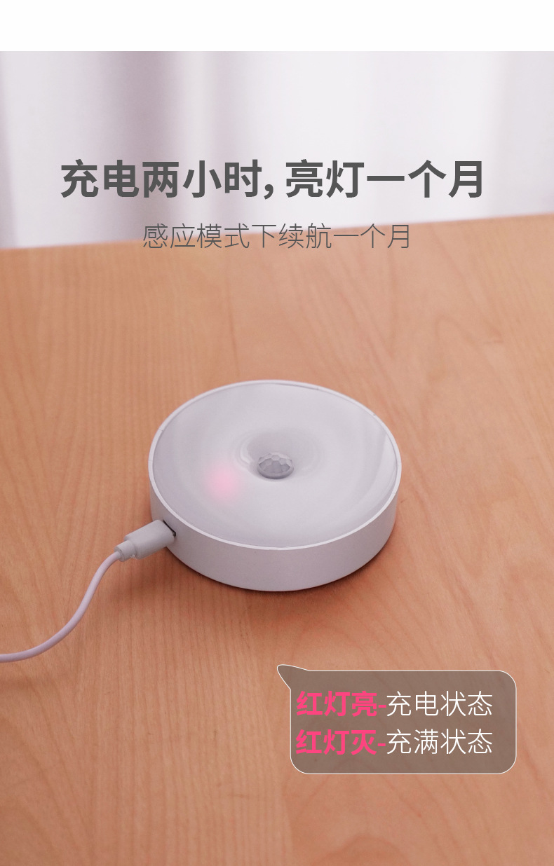 도매 led 인체 지능형 유도 충전 스위치 2 색 야간 조명 침실 USB 원형 캐비닛 유도 등