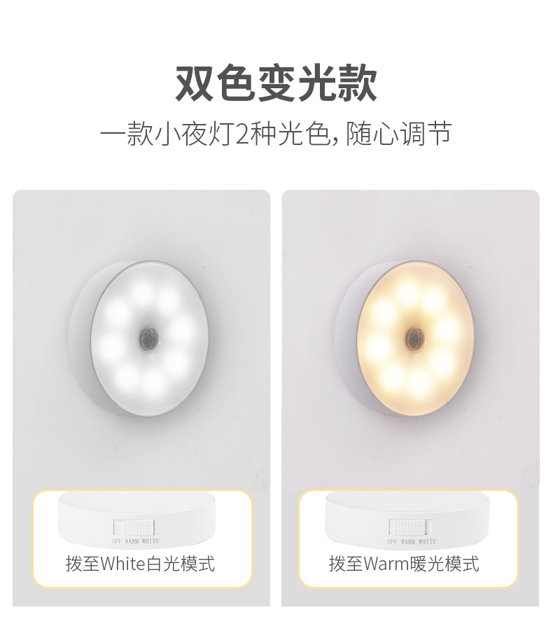 | 灯光颜色 | 按键款【白光/中性光/暖光】, 无开关感应款【白光】, 无开关感应款【暖光】, 感应款双色【白光/暖光】, 感应款单色【感应白光/常亮】白光, 感应款单色【感应暖光/常亮】暖光, 新款ABS材质+中性光常亮+人体感应白光+人体感应暖光+人体感应中性光 | 光源功率 | 1W |