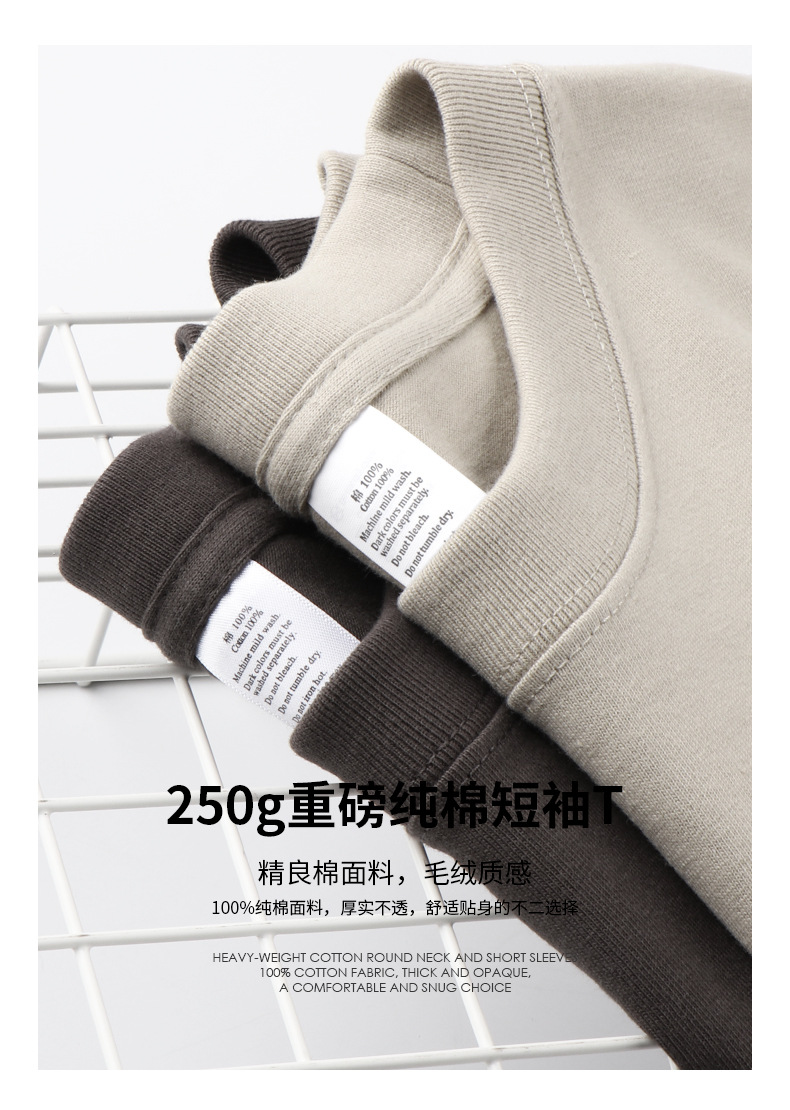250g 어깨 무거운 다크 그레이 순면 단색 반팔 느슨한 남자의 일본 패션 여성 티셔츠 연인 기본 셔츠