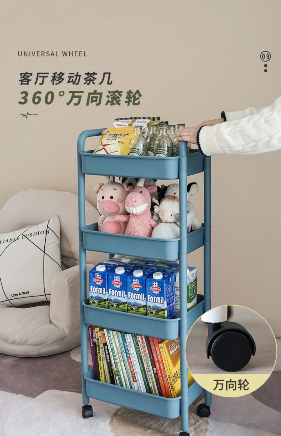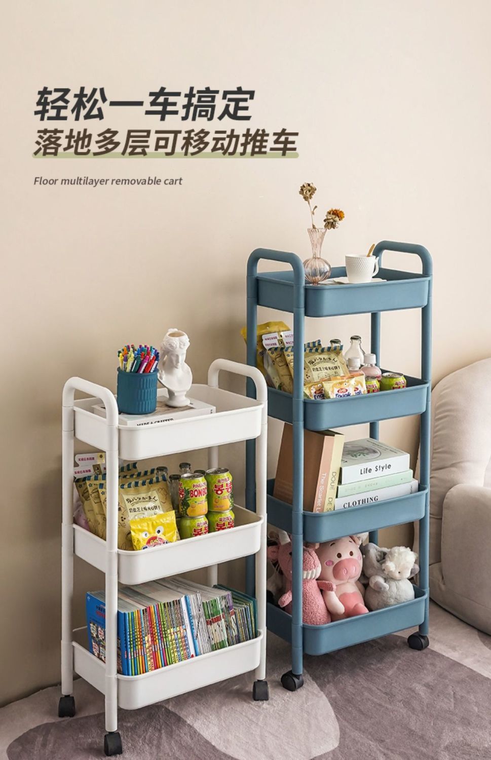 트롤리 스토리지 랙 바닥 다층 가정용 침실 아기 모바일 스낵 주방 다기능 스토리지 랙