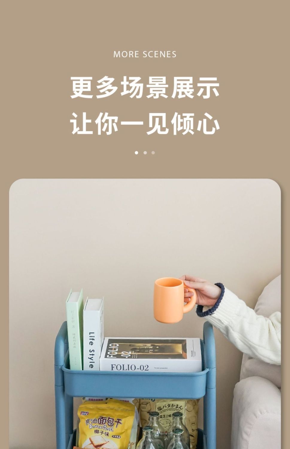 3단 탄소강 베이지 바구니 + 드래곤후르츠 파우더 트롤리