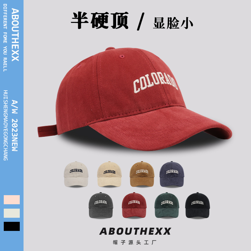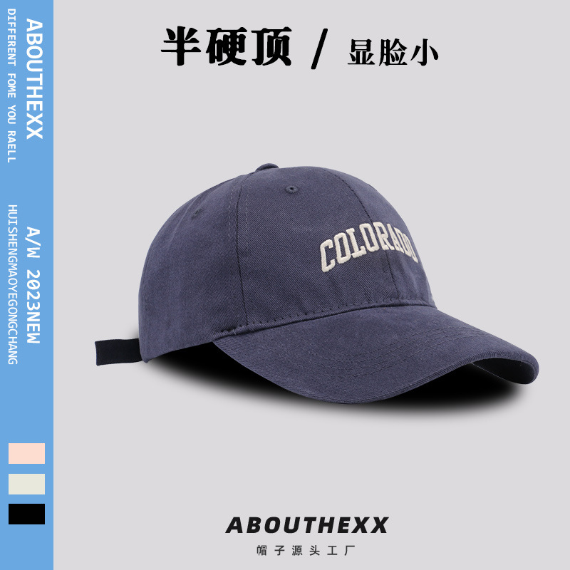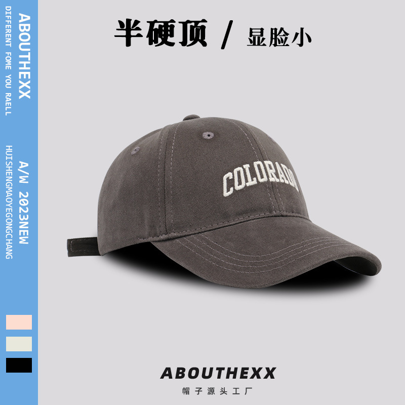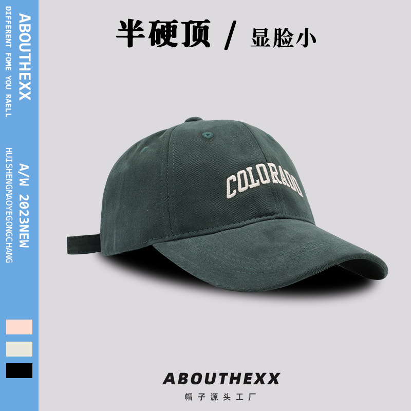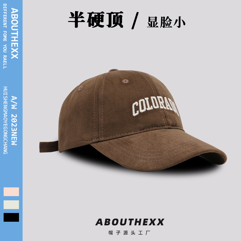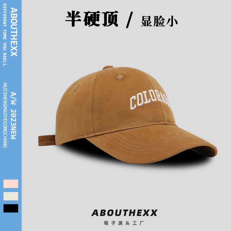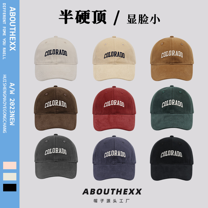 하이 퀄리티 브러시 질감 태양 모자 여자의 야외 태양 보호 세미 하드 탑 야구 모자 남자의 얼굴 작은 모자 유행