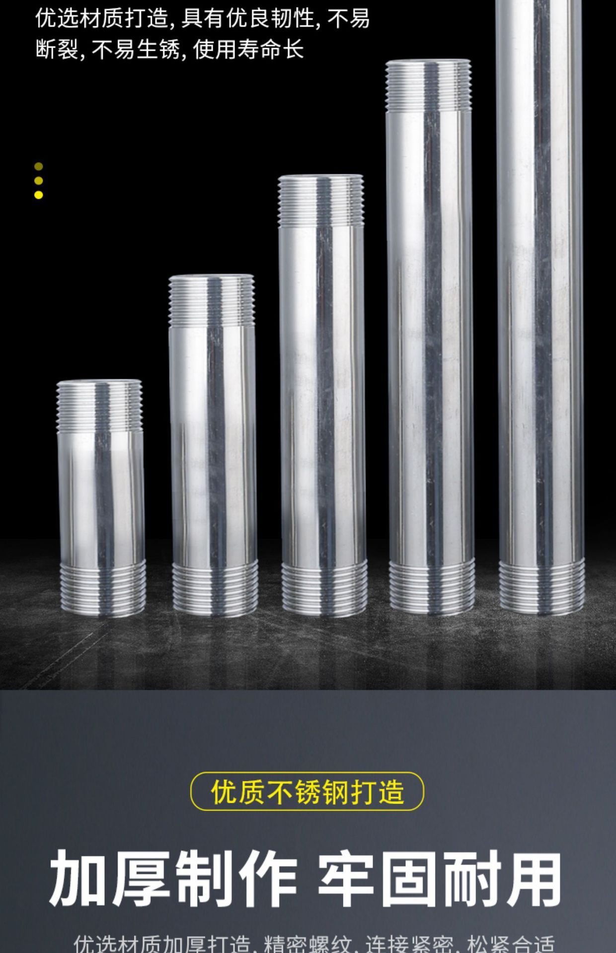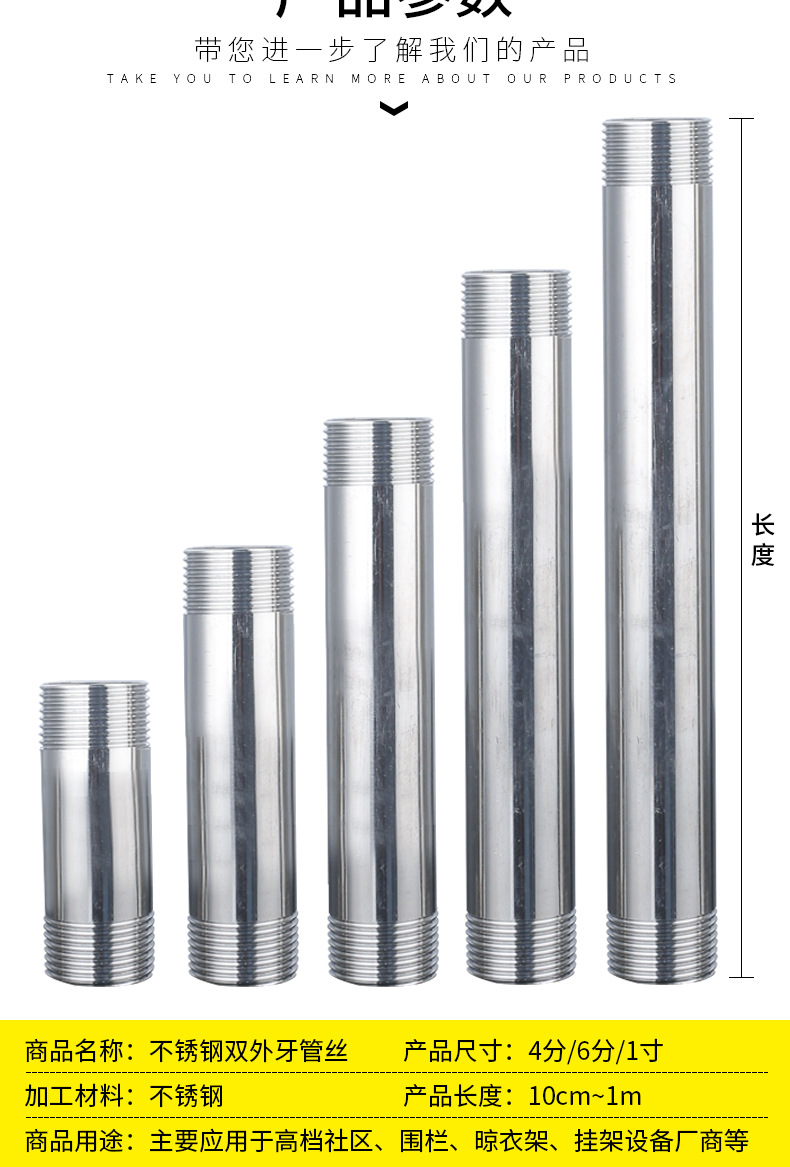 | 直径 | 20-32 | 产品规格 | 4分*10cm, 4分*20cm, 4分*30cm, 4分*40cm, 4分*50cm, 4分*60cm, 4分*70cm, 4分*80cm, 4分*100cm, 6分*10cm, 6分*20cm, 1寸*10cm, 1寸*20cm, 4分*10cm外丝皮接钢管, 6分*10cm外丝皮接钢管, 1寸*10cm外丝皮接钢管 |