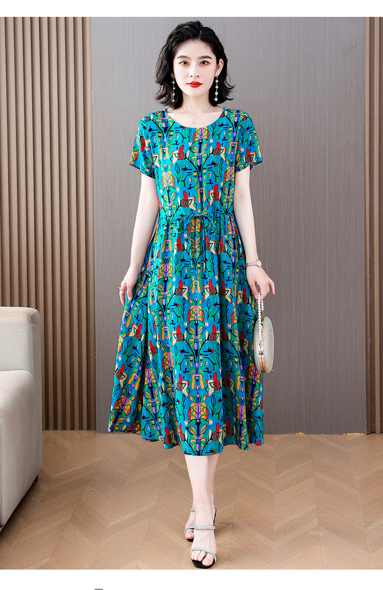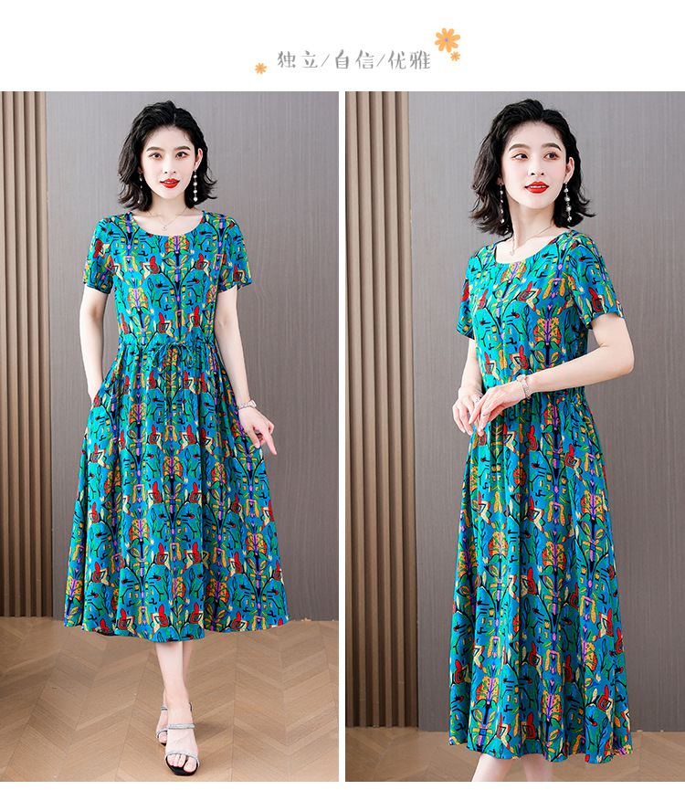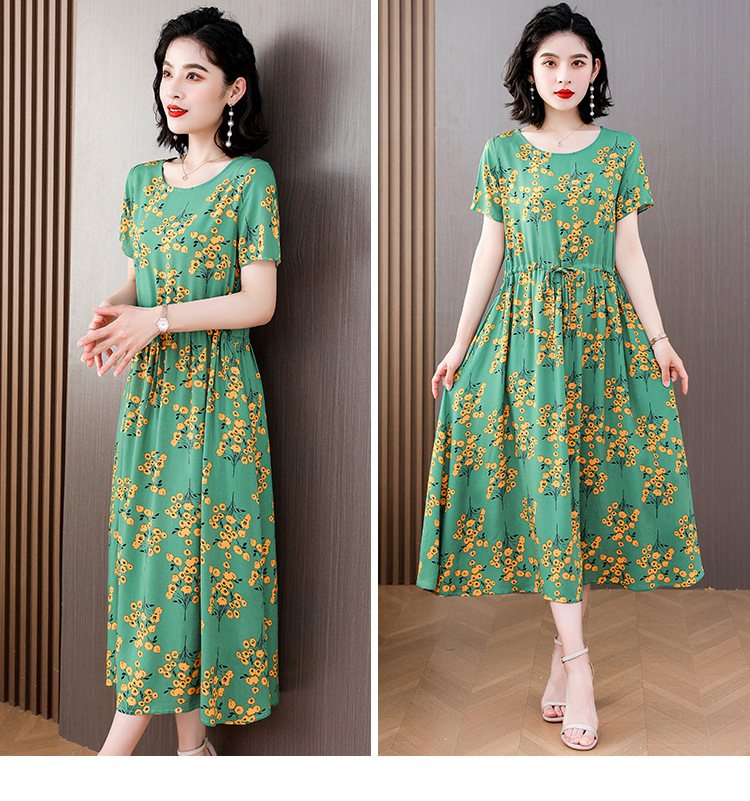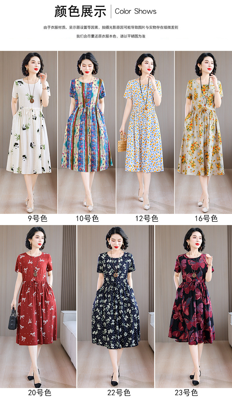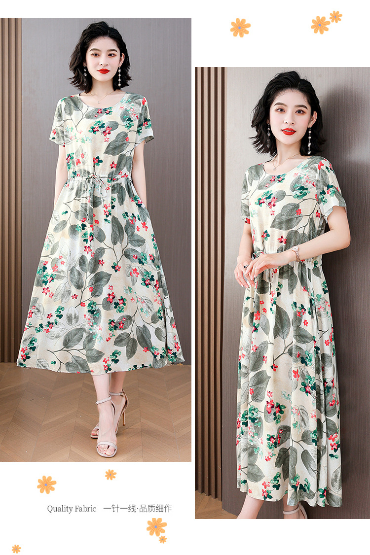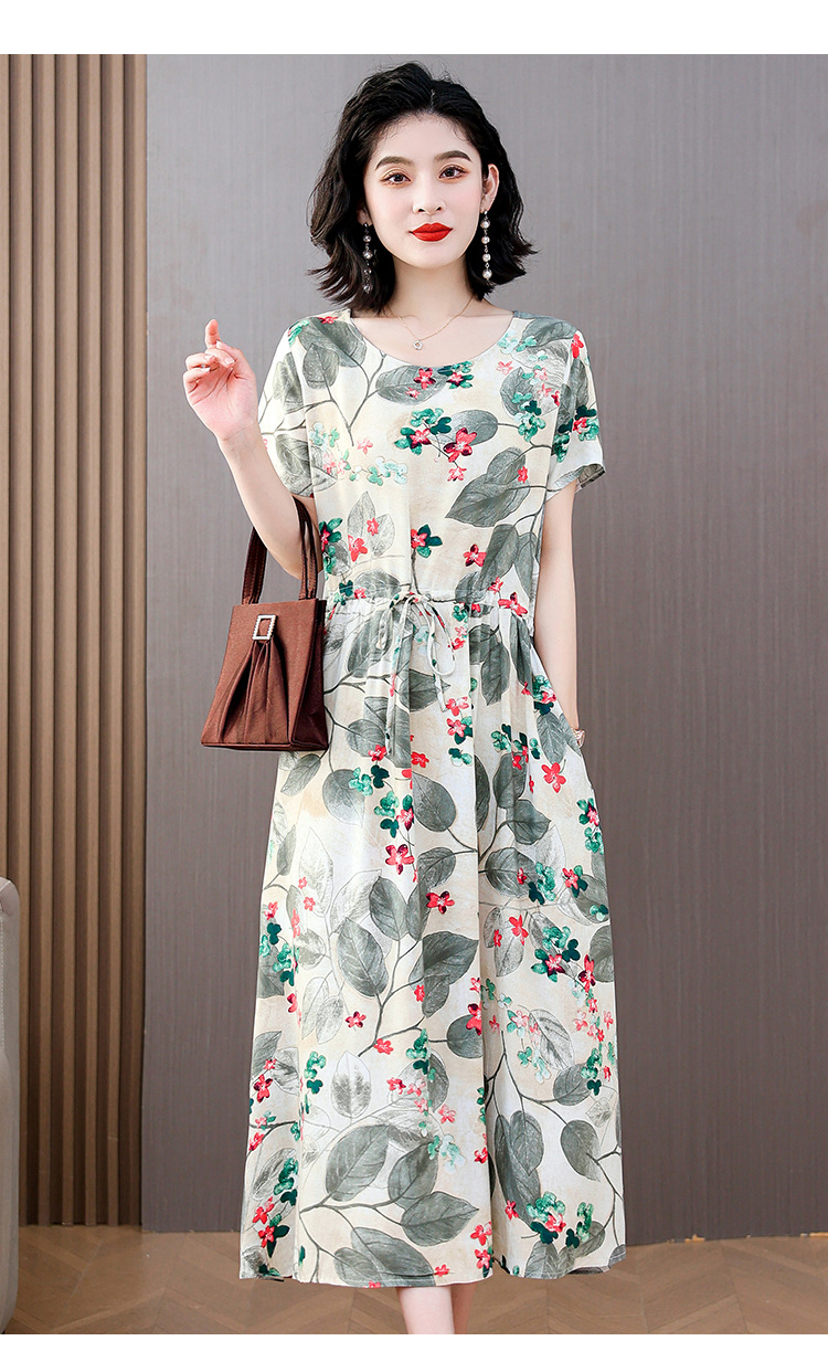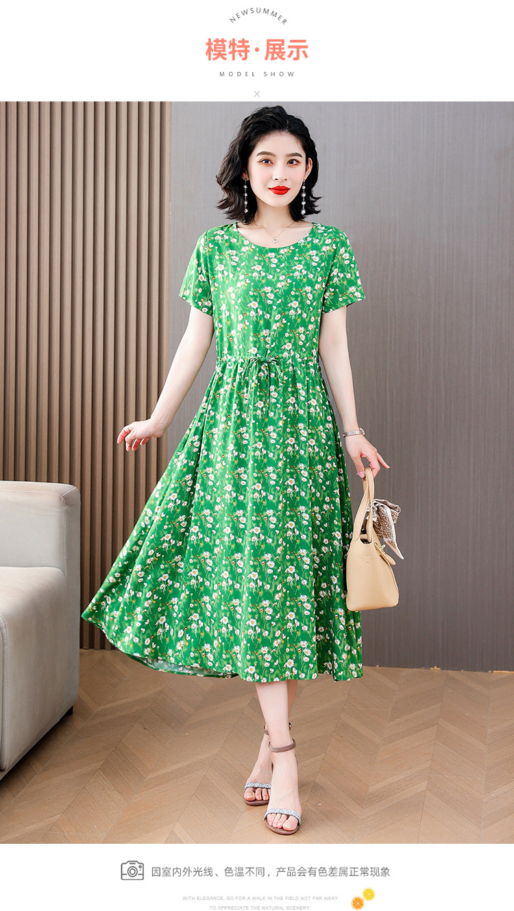 하이 엔드 새로운 중년 면 실크 원피스 여름 젊은 중년 어머니 꽃 롱 스커트 우아한 겉옷