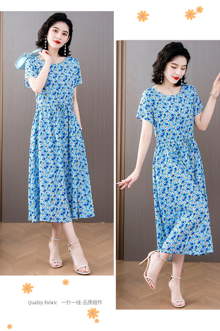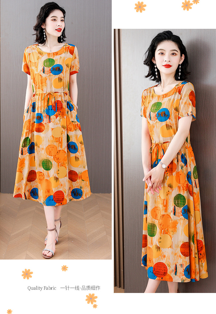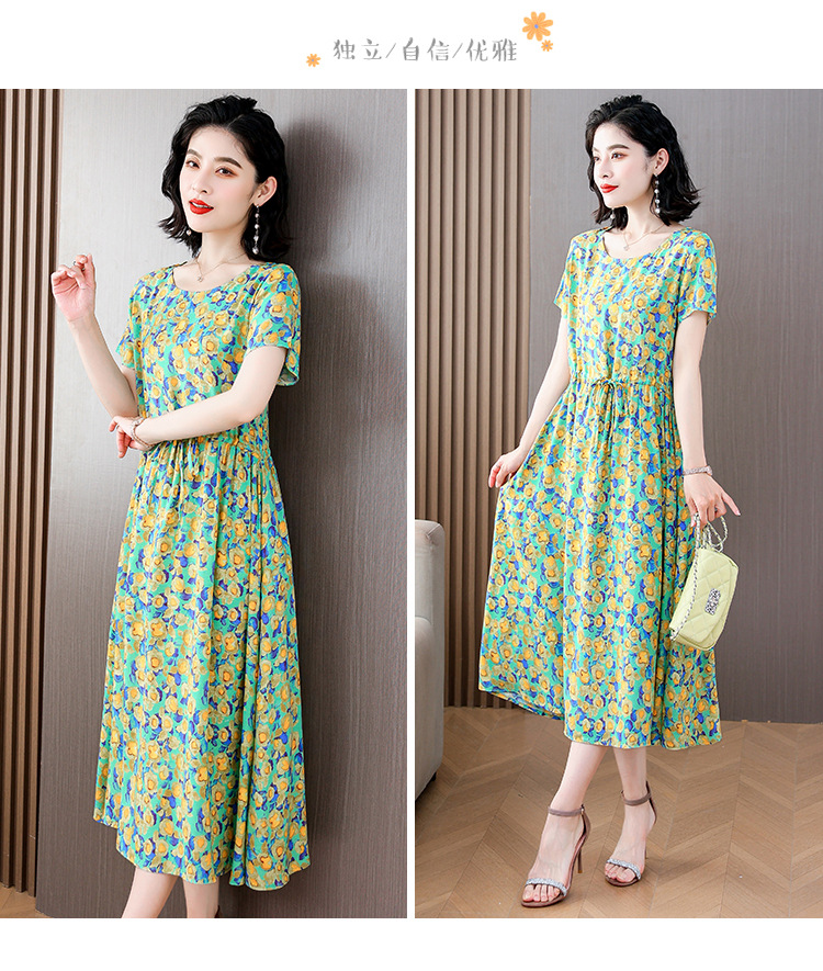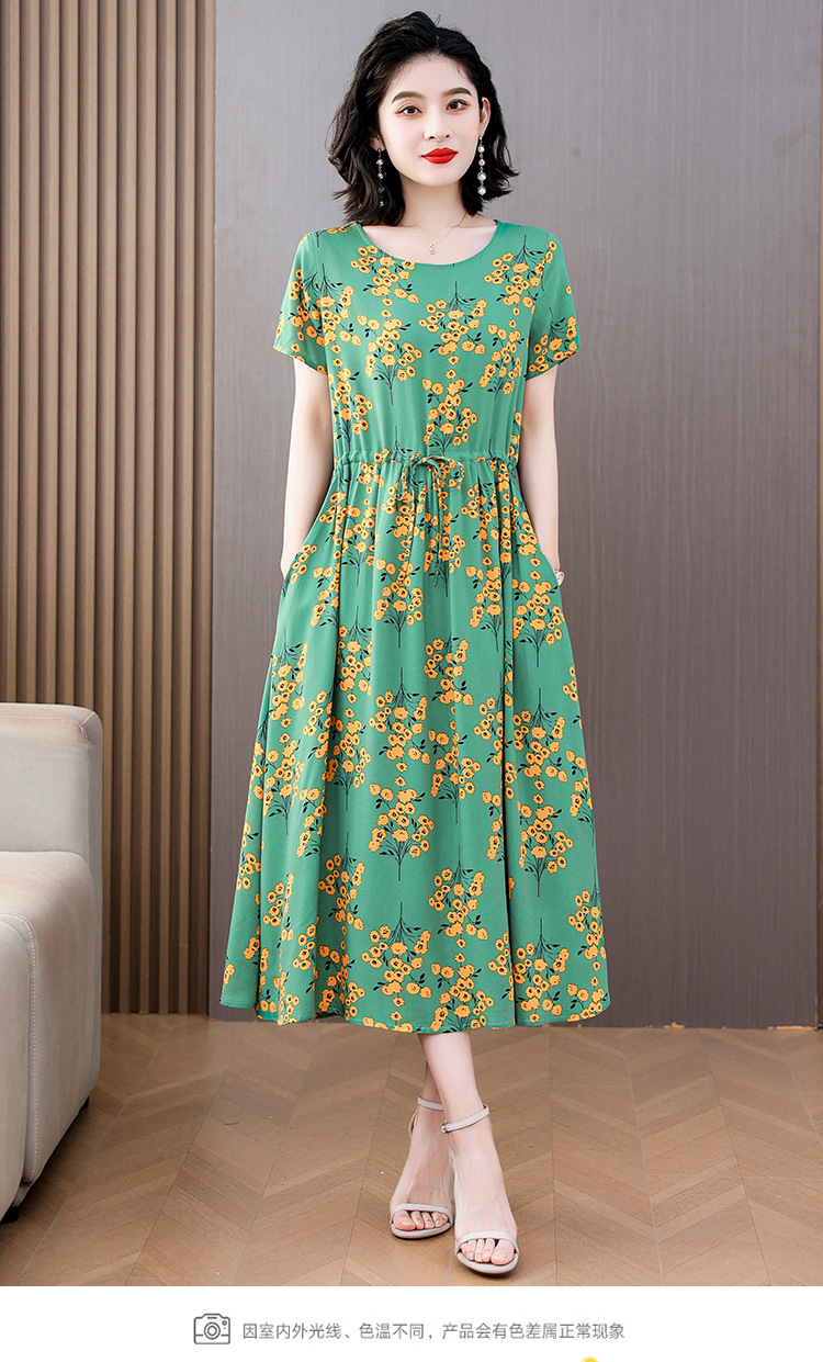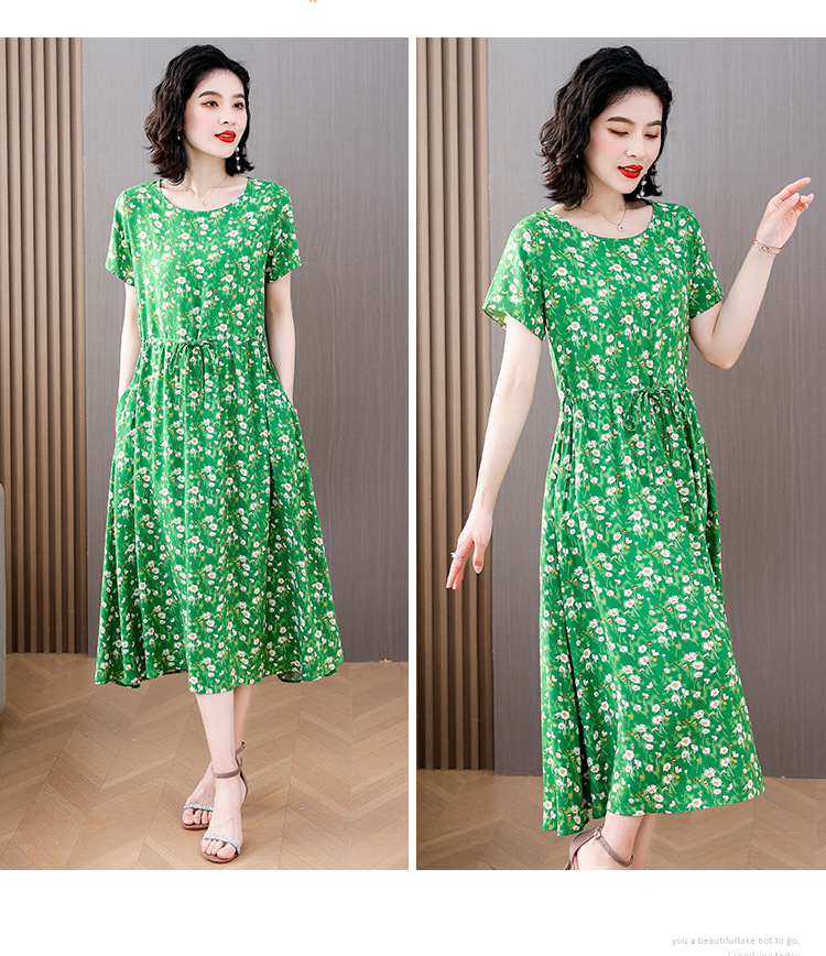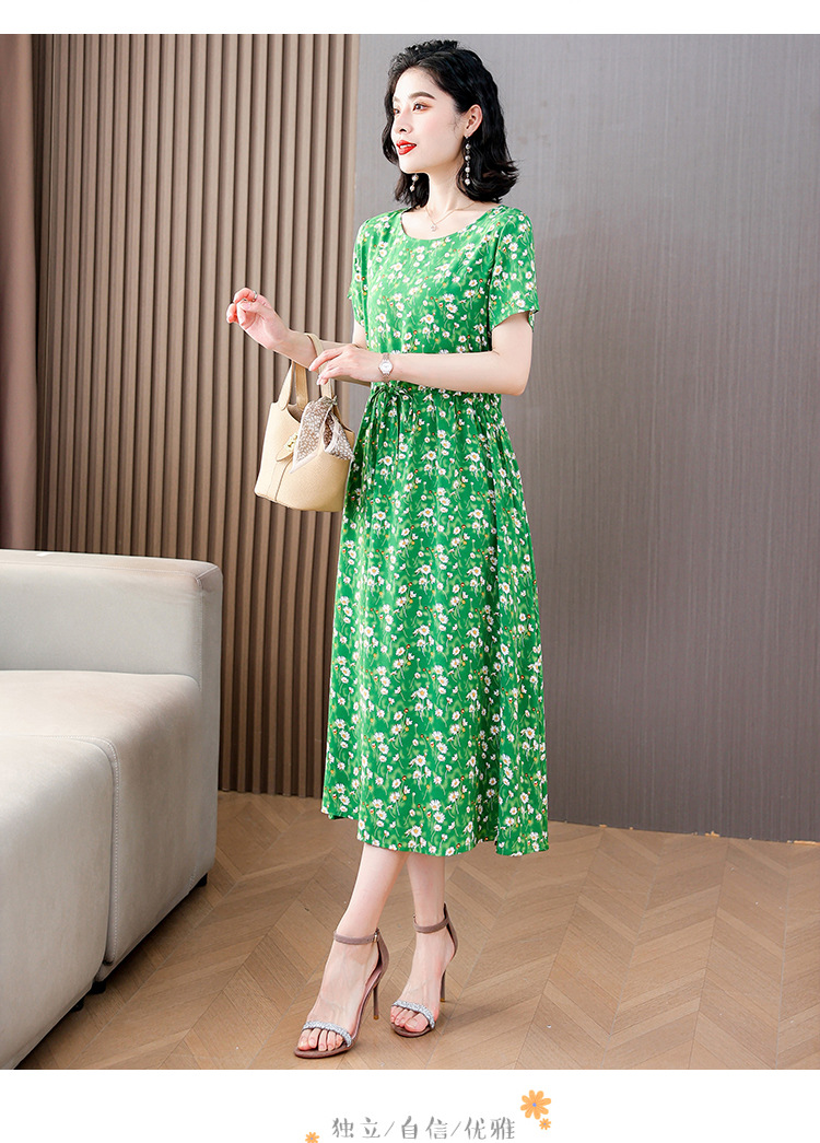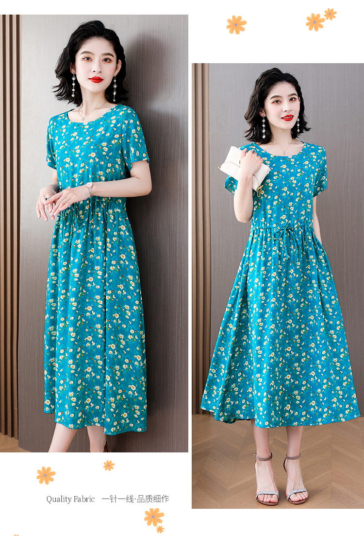 하이 엔드 새로운 중년 면 실크 원피스 여름 젊은 중년 어머니 꽃 롱 스커트 우아한 겉옷