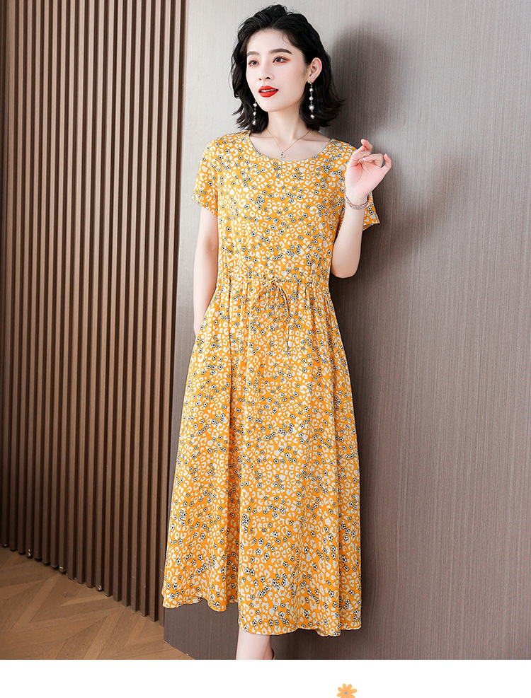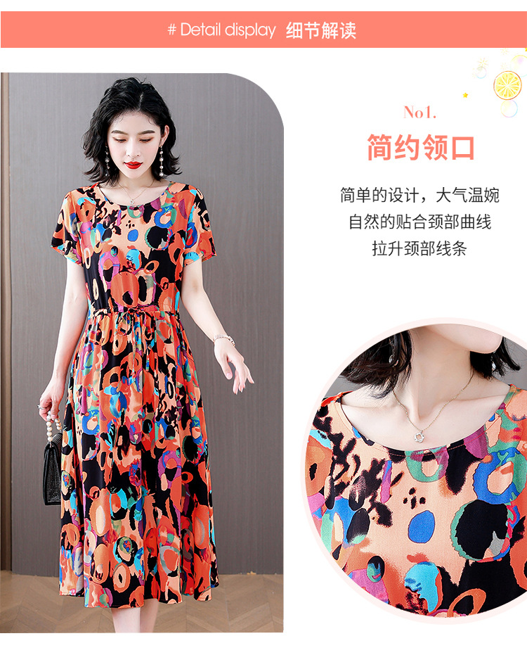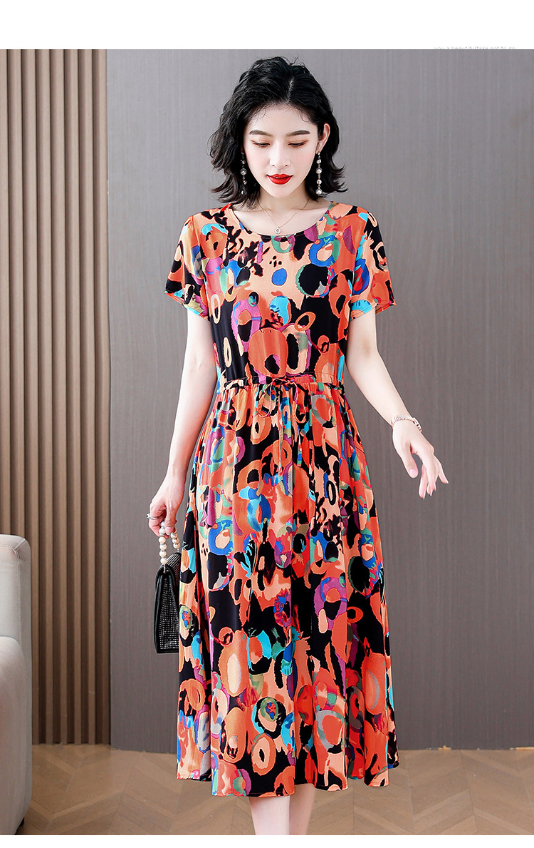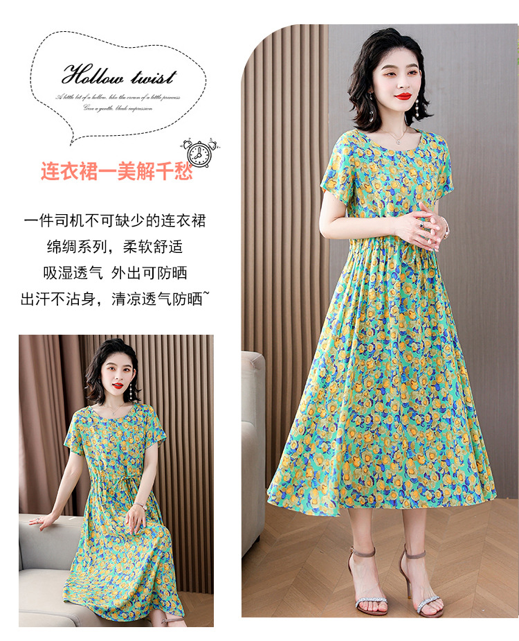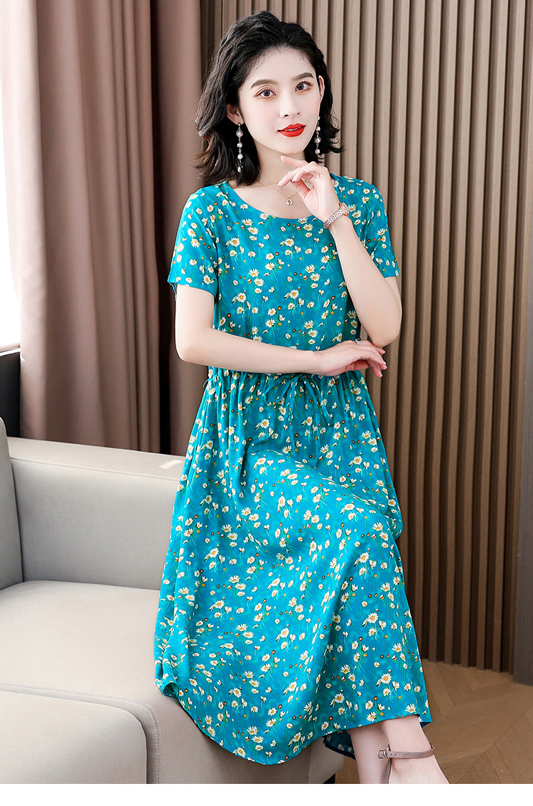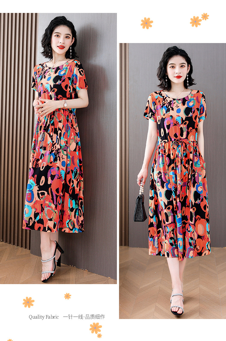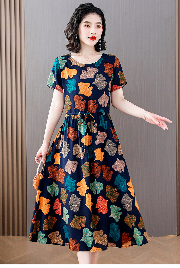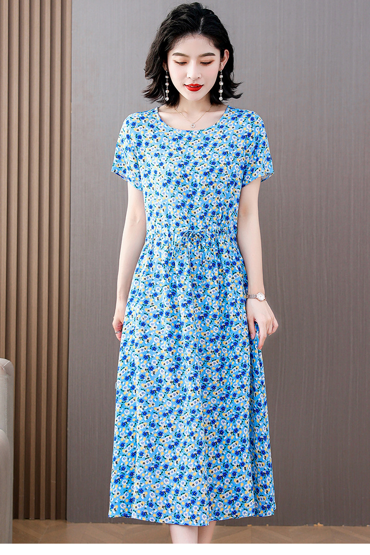 하이 엔드 새로운 중년 면 실크 원피스 여름 젊은 중년 어머니 꽃 롱 스커트 우아한 겉옷