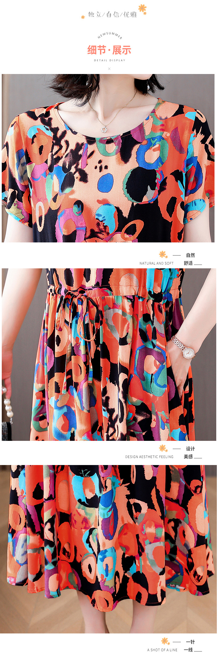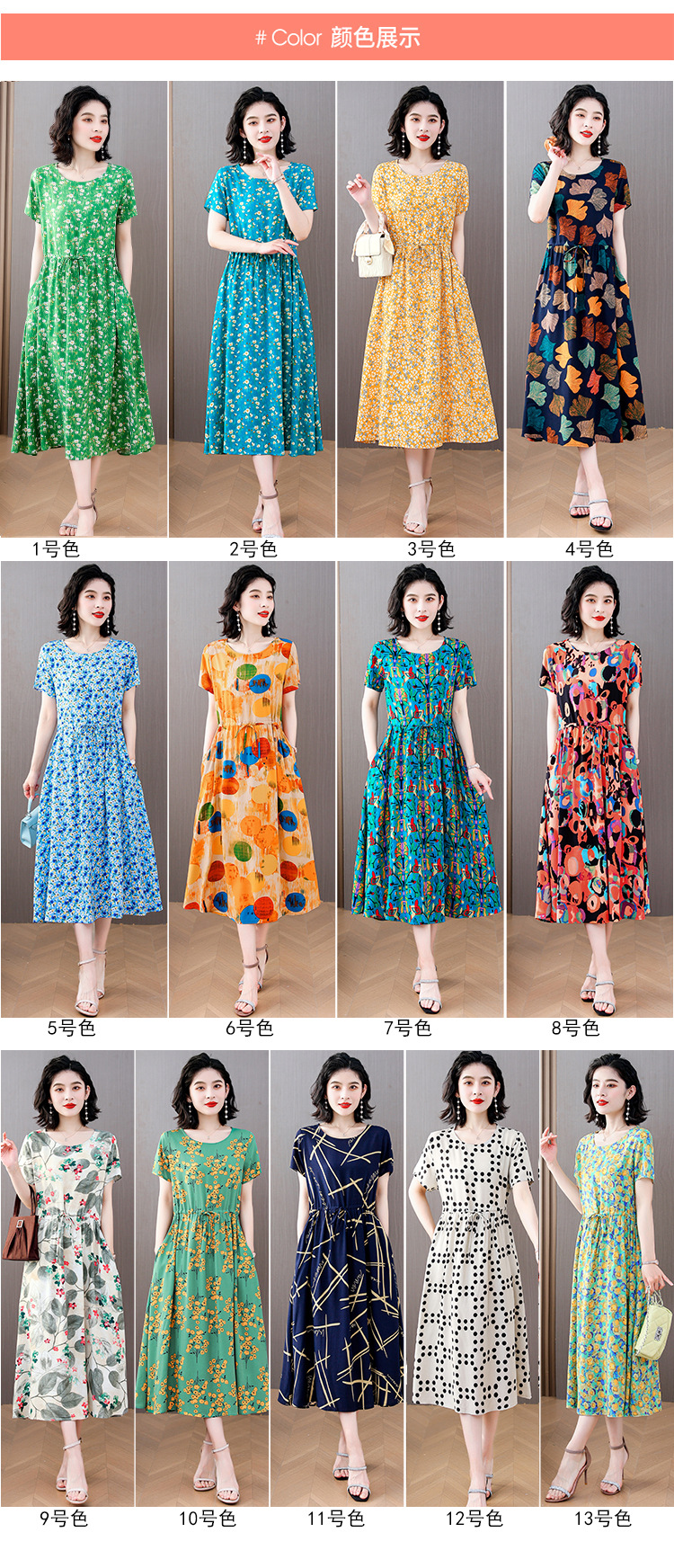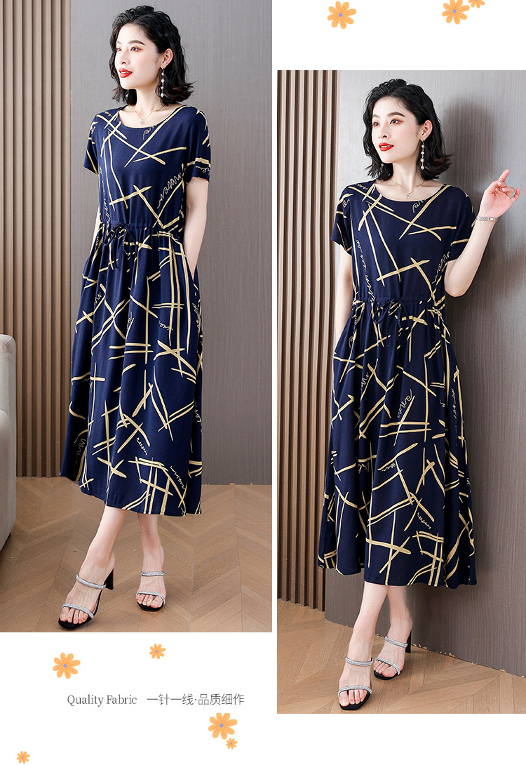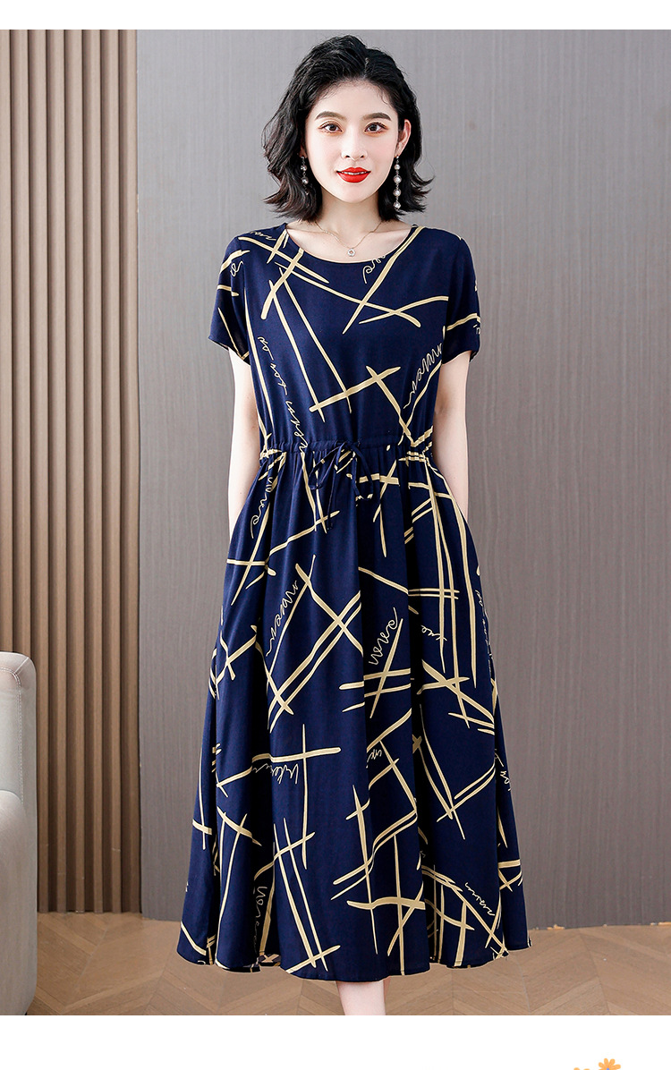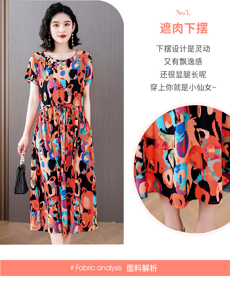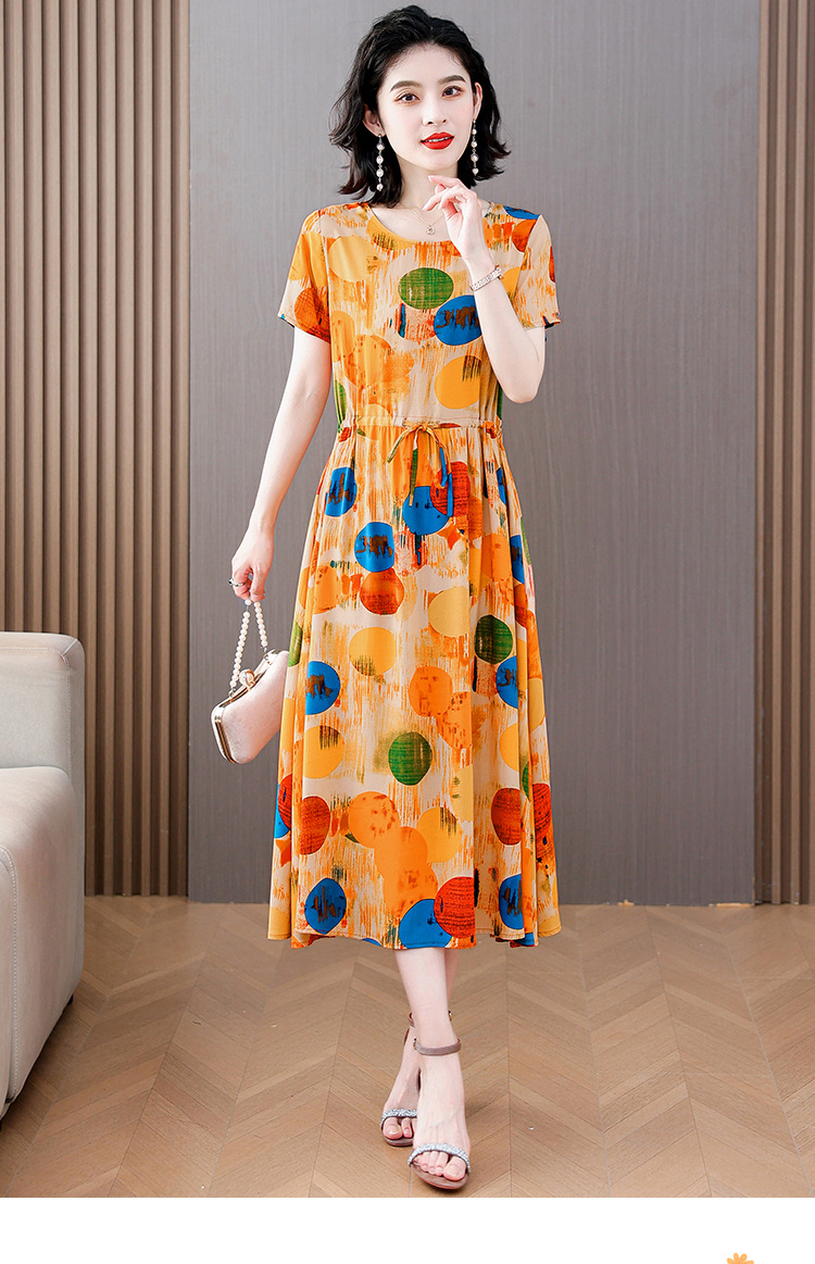하이 엔드 새로운 중년 면 실크 원피스 여름 젊은 중년 어머니 꽃 롱 스커트 우아한 겉옷