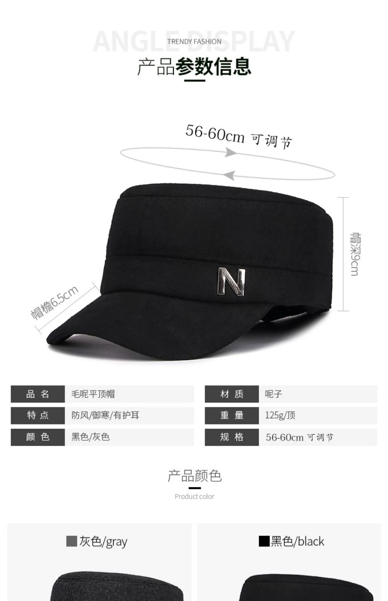 | 产品类别 | 平顶帽 | 流行元素 | 纹理 |
