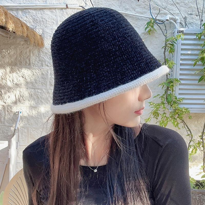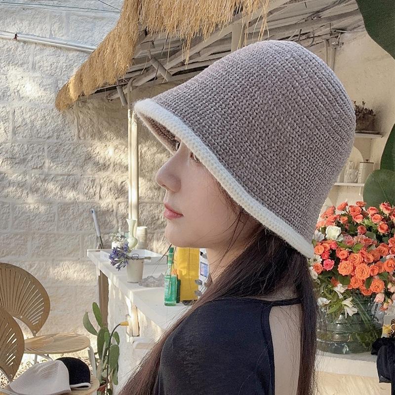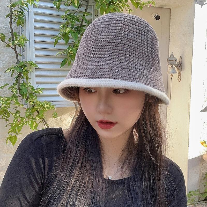 셔닐 어부 모자 여자의 가을과 겨울 일본식 모든 경기 얼굴을 보여주는 작은 니트 버킷 모자 따뜻한 패션 컬러 매칭 분지 모자