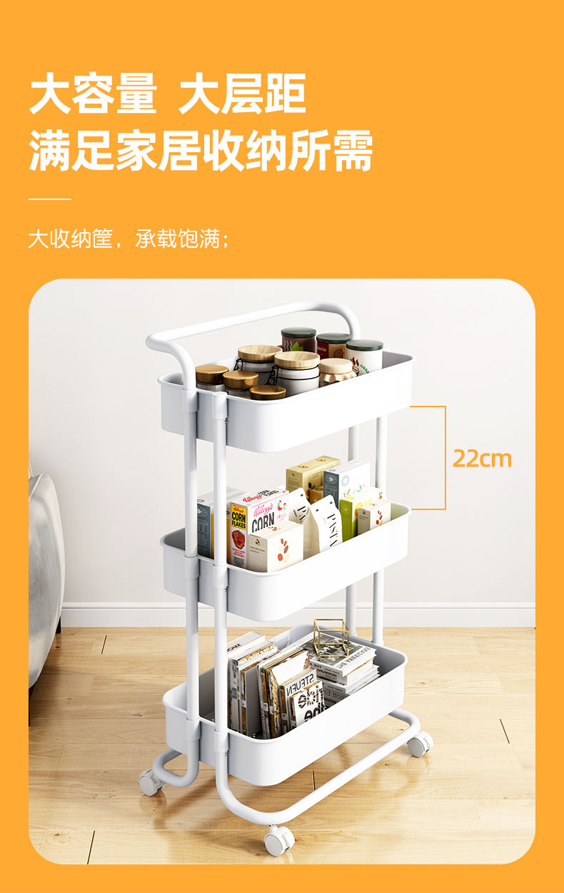 가정용 수납 선반 라스커 트롤리 선반 주방 욕실 거실 이동식 다층 수납 선반