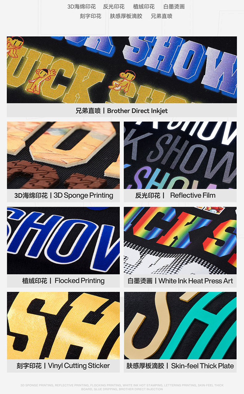 | 可定制工艺 | 热转印 丝印 刺绣 数码直喷 钉珠 亮片 贴布绣 洗水 喷绘 植绒 发泡 突印 烫金 烫印 夜光 | 适用年龄段 | 成人 |