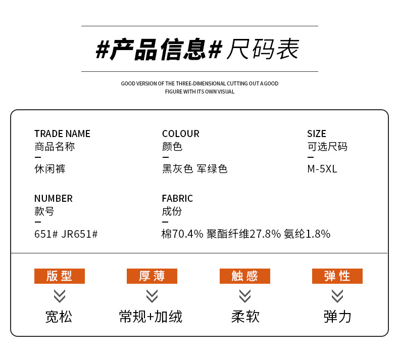 | 颜色 | 651黑灰常规, 651军绿常规, JR651黑灰加绒, JR651军绿加绒, 2075黑灰常规, 2075军绿常规, 2075蓝色常规 | 尺码 | M(100斤), L(120斤), XL(140斤), XXL(160斤), 3XL(175斤), 4XL(190斤), 5XL(205斤) |