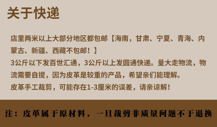 | 品牌 | 其他 | 颜色 | 灰色20号(单皮革)油蜡, 1号黑色(单皮革), 墨绿色 6号(单皮革)油蜡, 58号橘红(单皮革), 11号暗红(单皮革), 米白色26号(单皮革), 110号湖蓝(单皮革), 白色 28号(单皮革), 红色 77号(单皮革), 酒红色 117号(单皮革), 53号棕红(单皮革), 2号深咖啡(单皮革), 126号棕红(单皮革), 99号深绿(单皮革) |