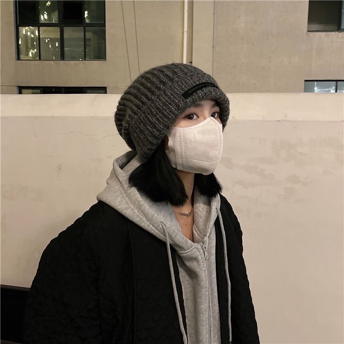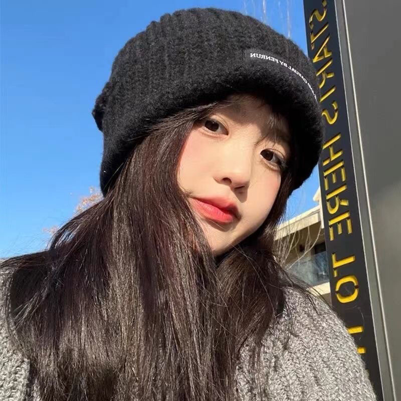 작은 모자를 보여주는 큰 머리 얼굴 여자의 가을과 겨울 느슨한 검은 모직 모자 차가운 모자 모든 일치 귀 보호 따뜻한 니트 모자