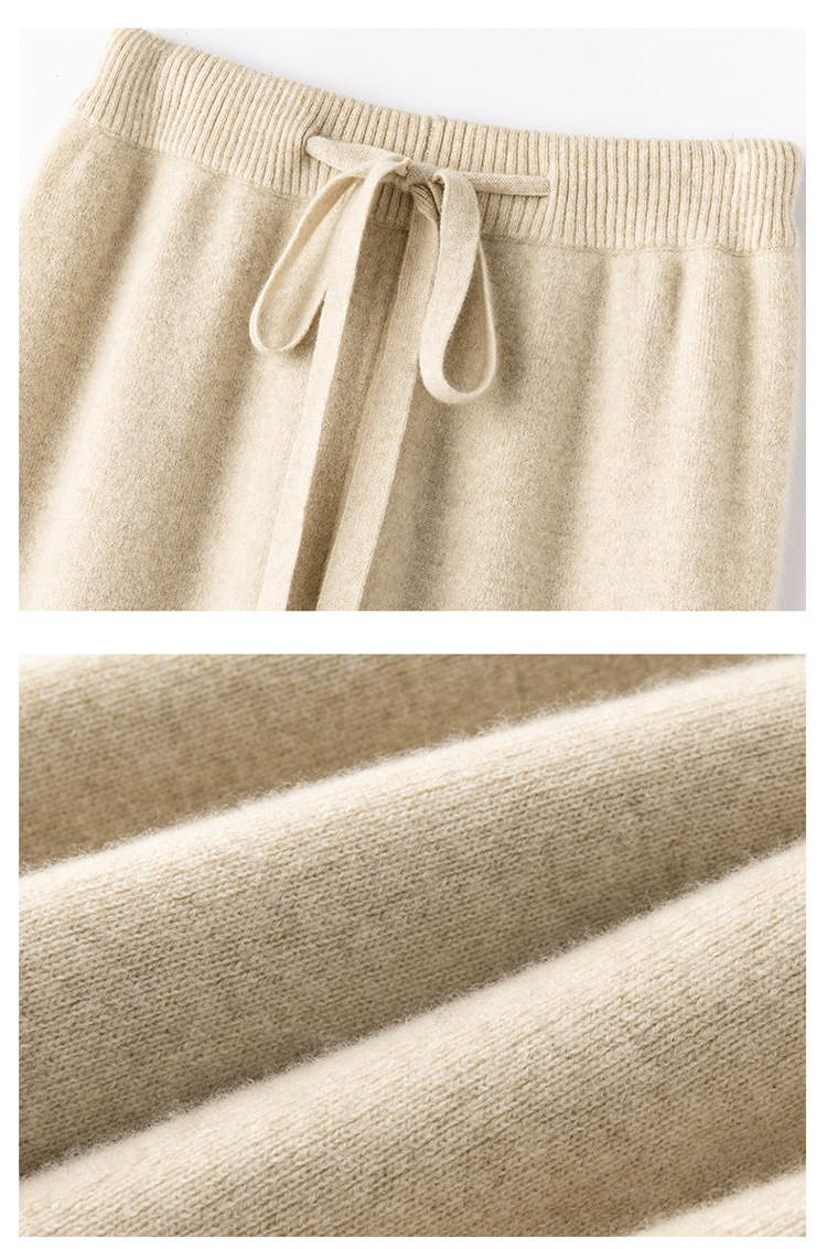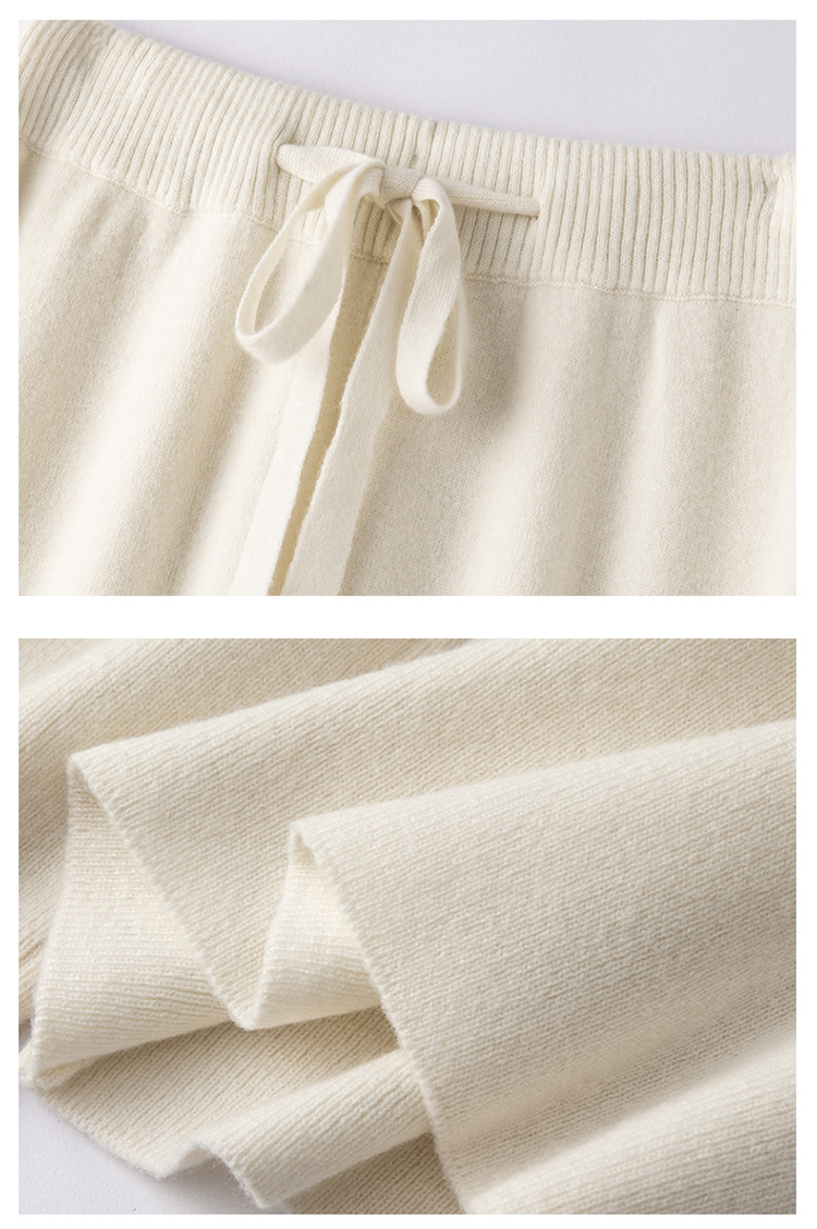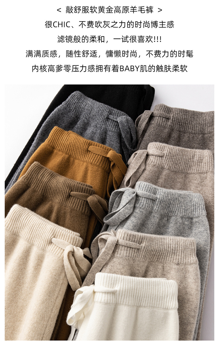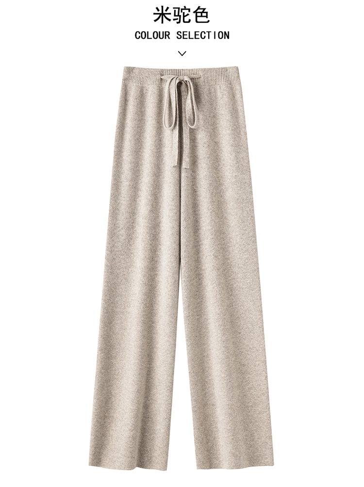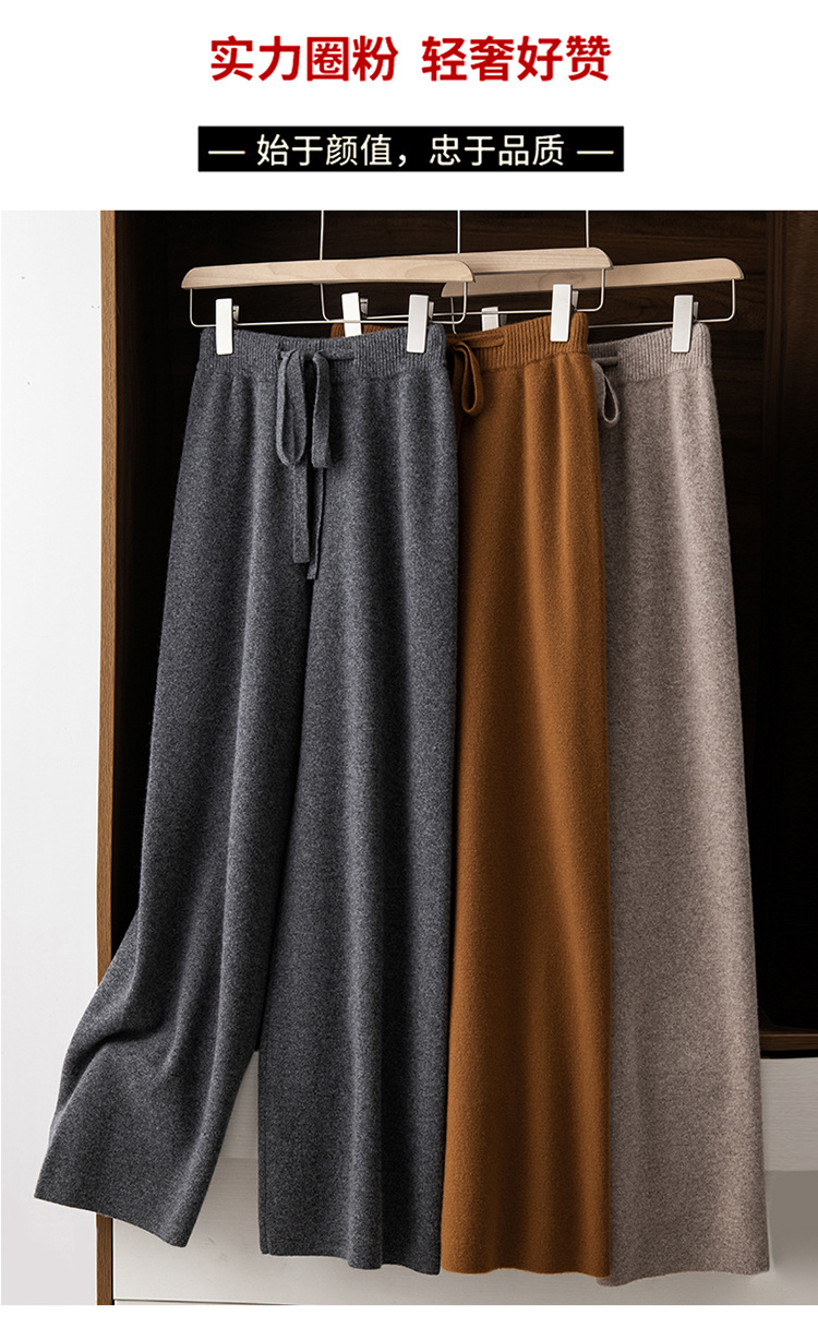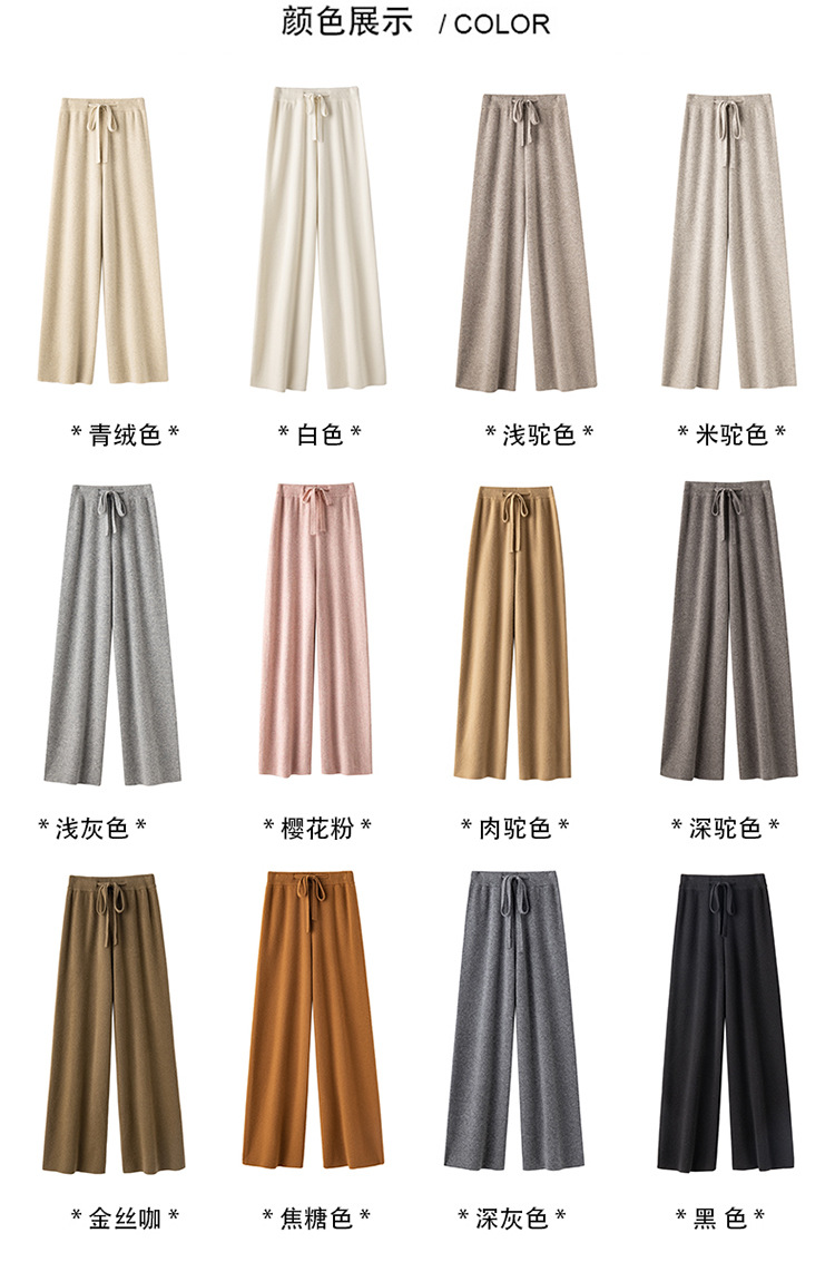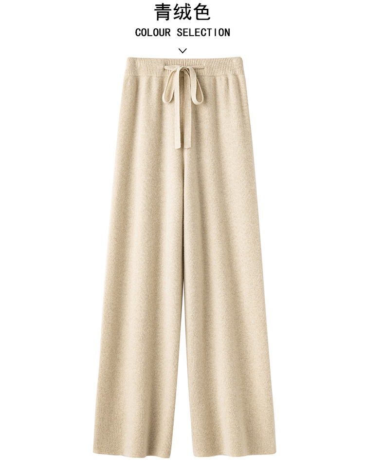 여성용 100% 순수 울 니트 와이드 팬츠, 캐주얼 루즈 스트레이트 가을 겨울 슬리밍 하이웨이스트 드레이프 팬츠