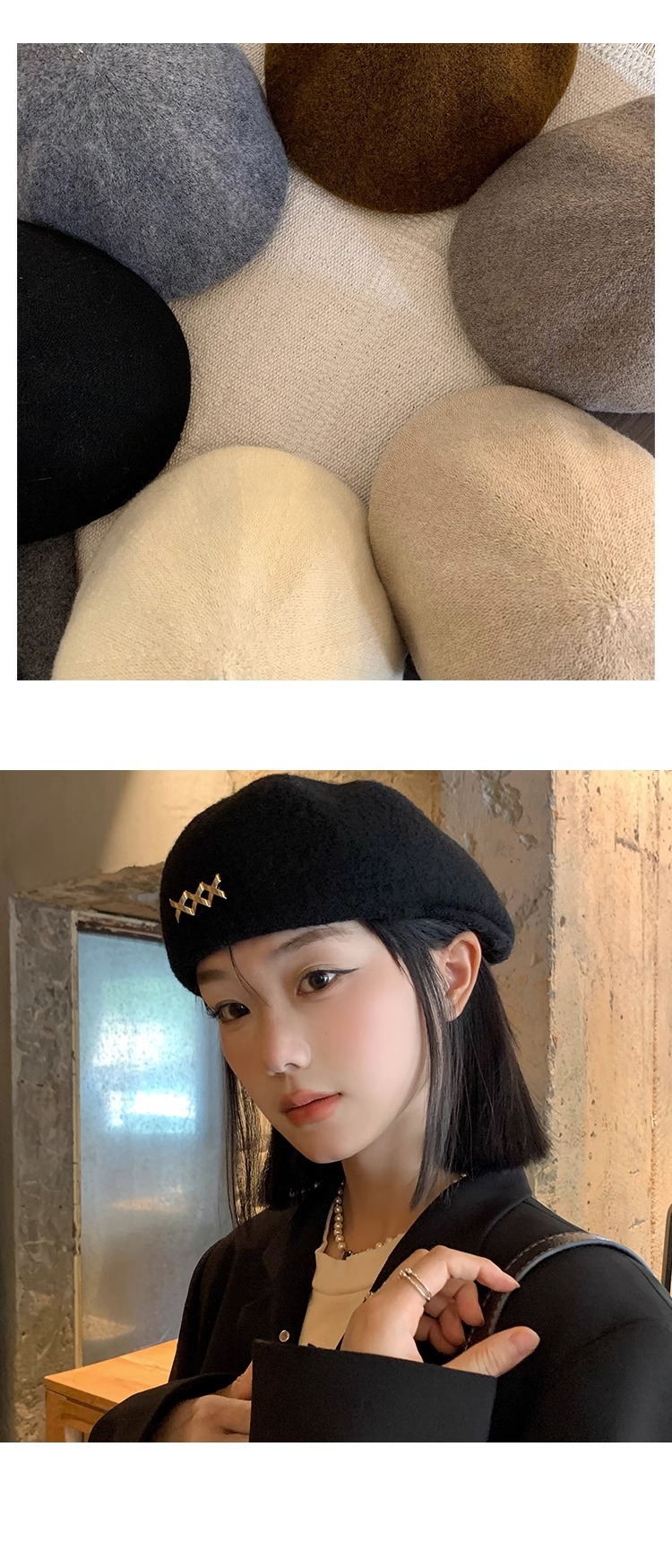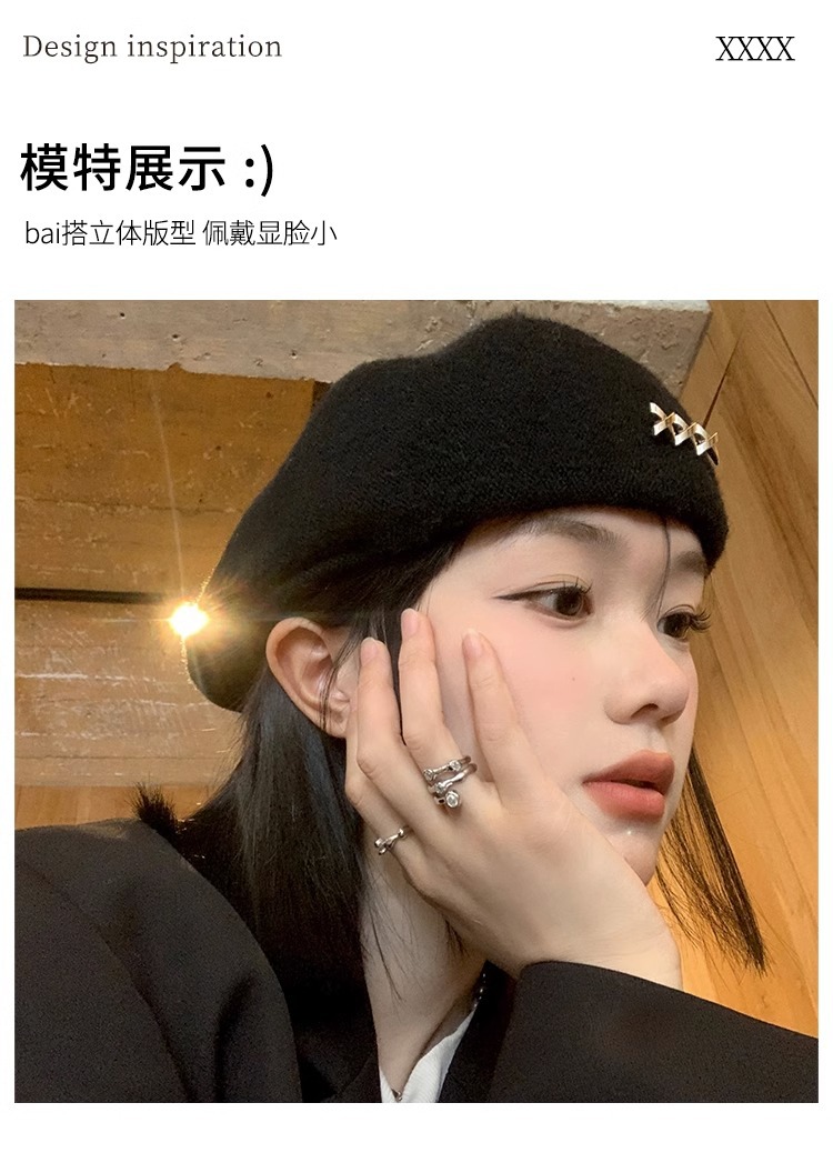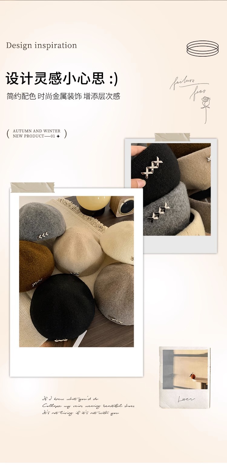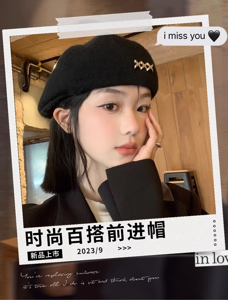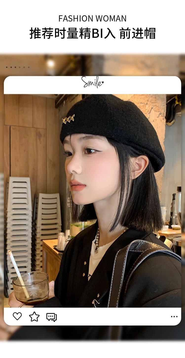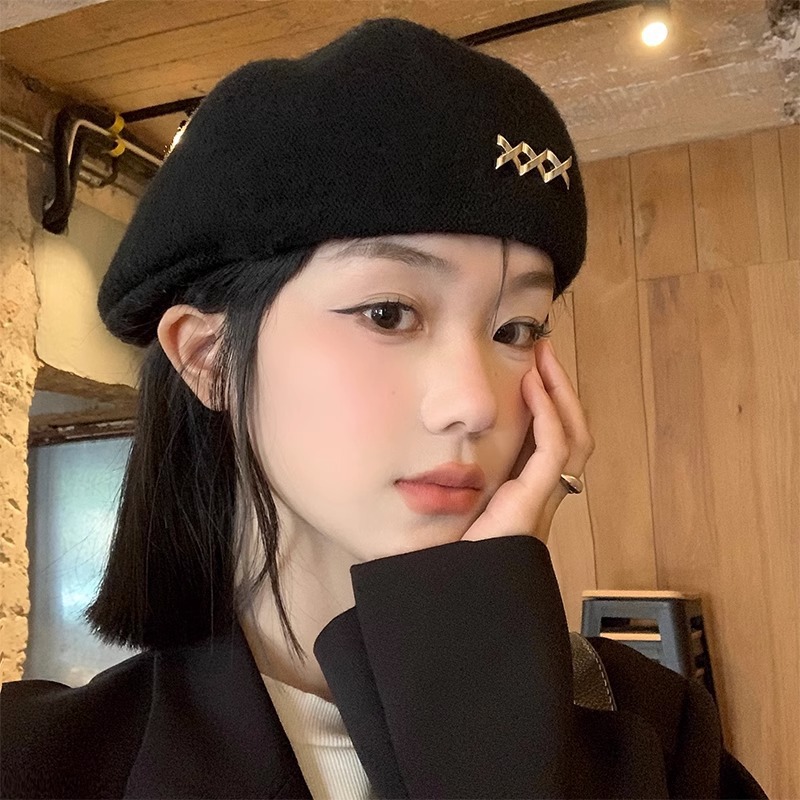 블랙 베레모 여성의 가을과 겨울 한국 스타일 모든 매치 모직 따뜻한 얼굴 전시 가능한 작은 모자 큰 머리 기다리는 Beilei 화가 모자