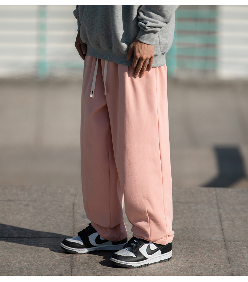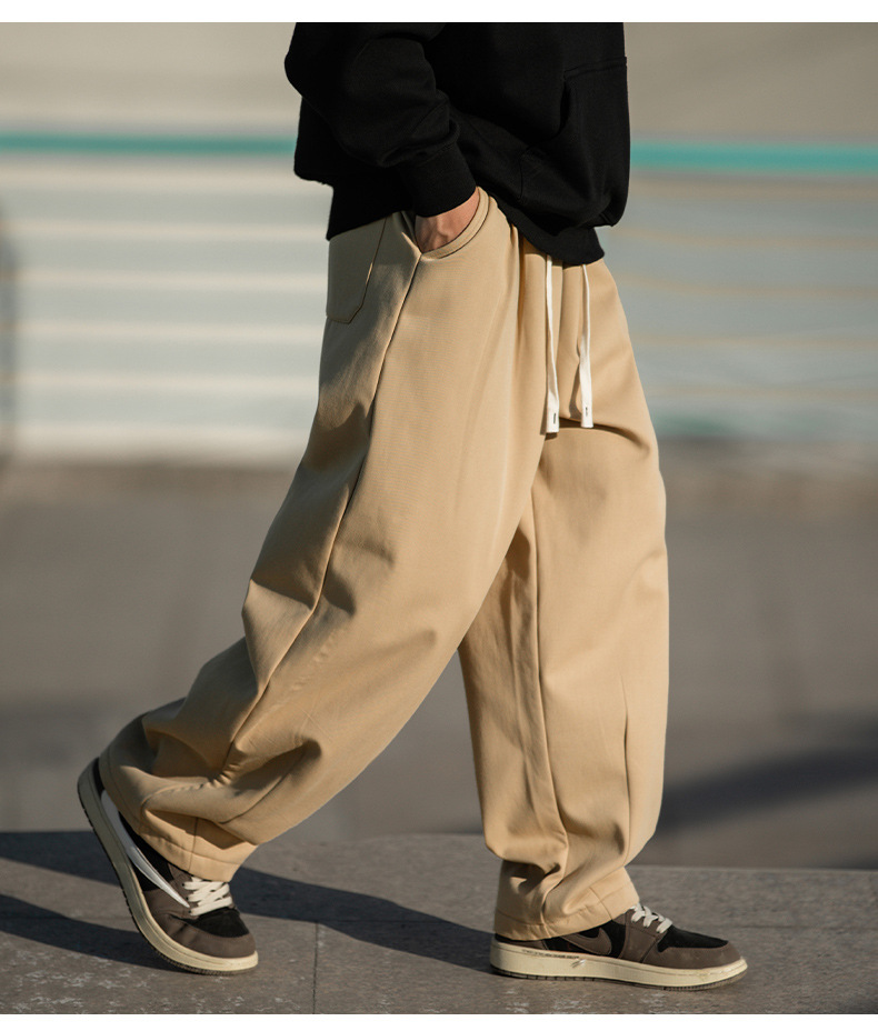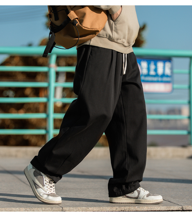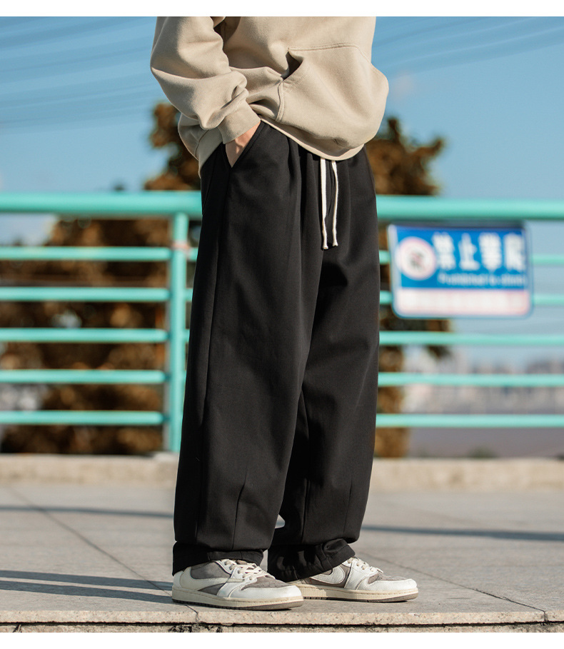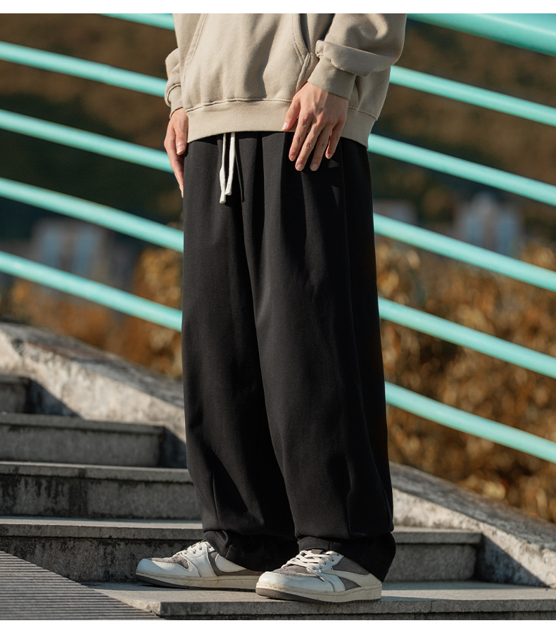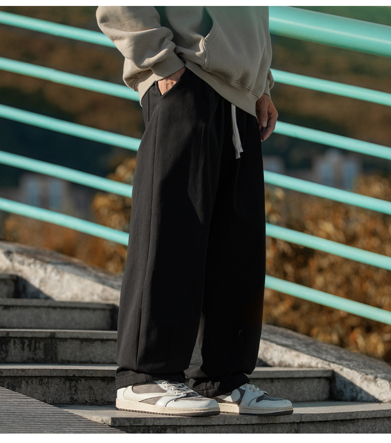 한루 남성복 기모 캐주얼 팬츠 남성 가을 신상 주름 디자인 긴바지 루즈핏 드로스트링 드레이프 스웨트팬츠