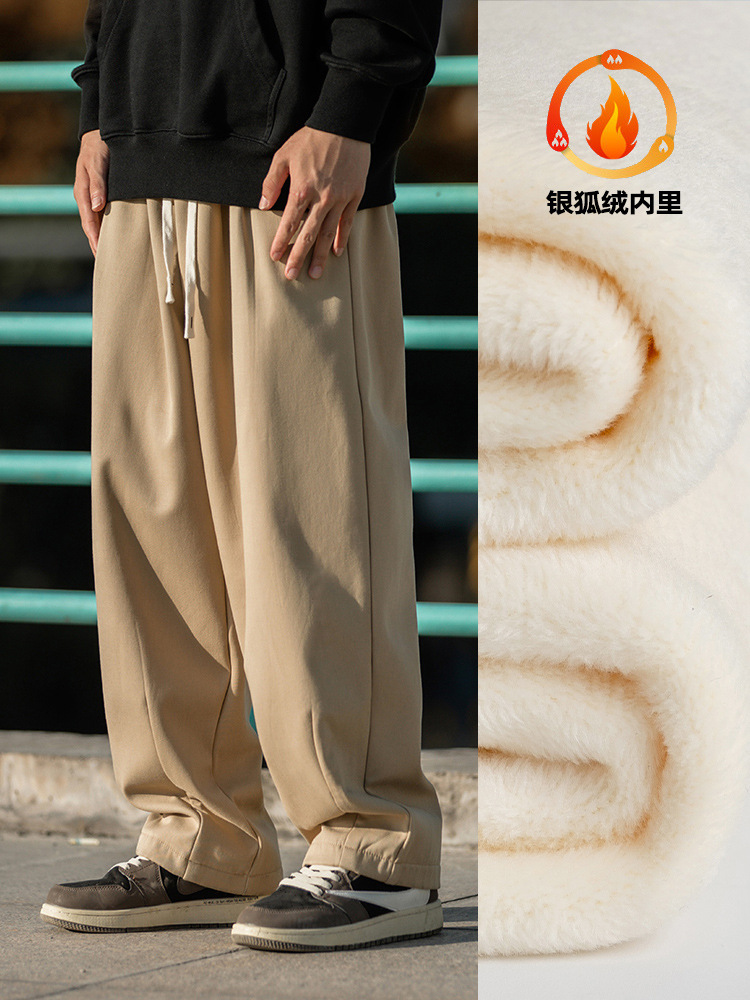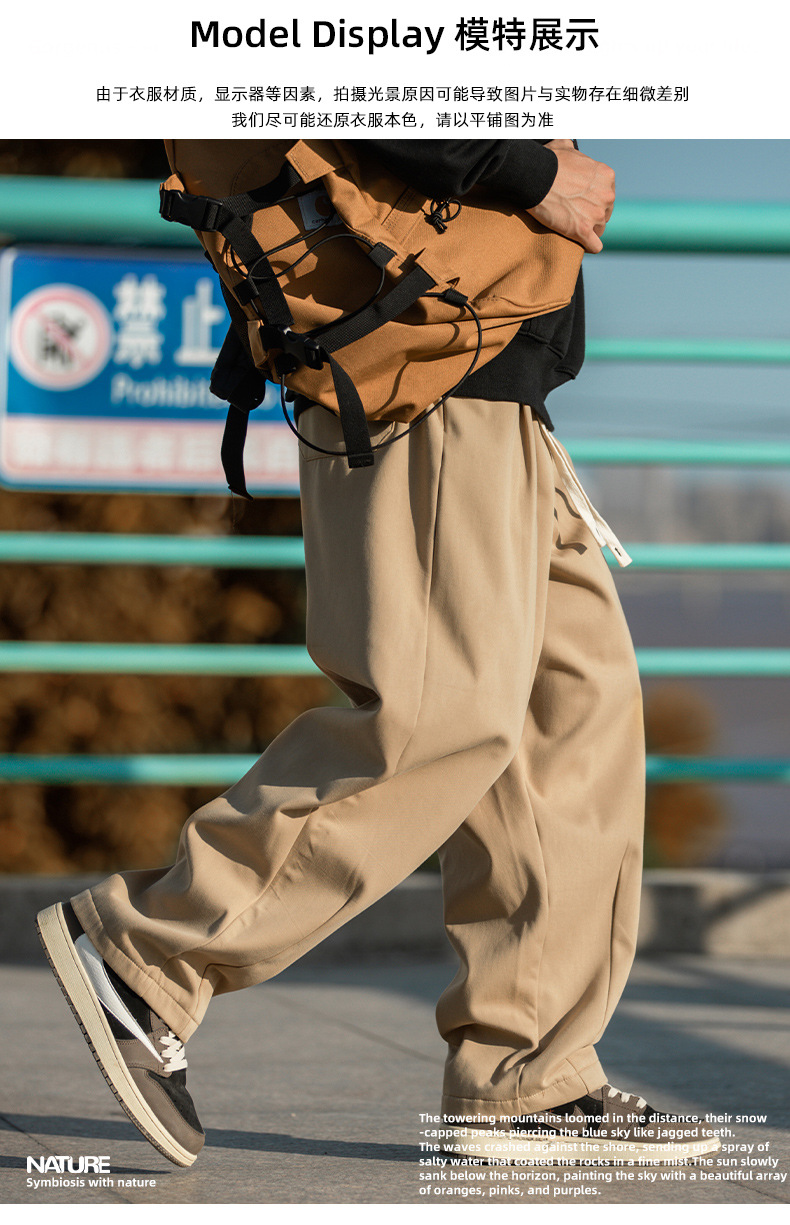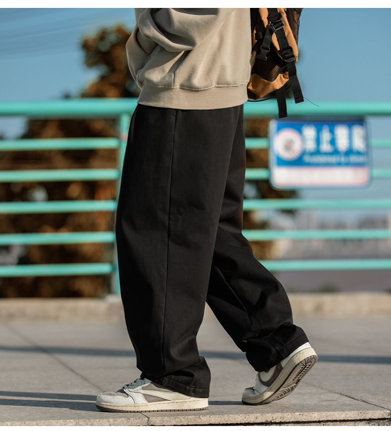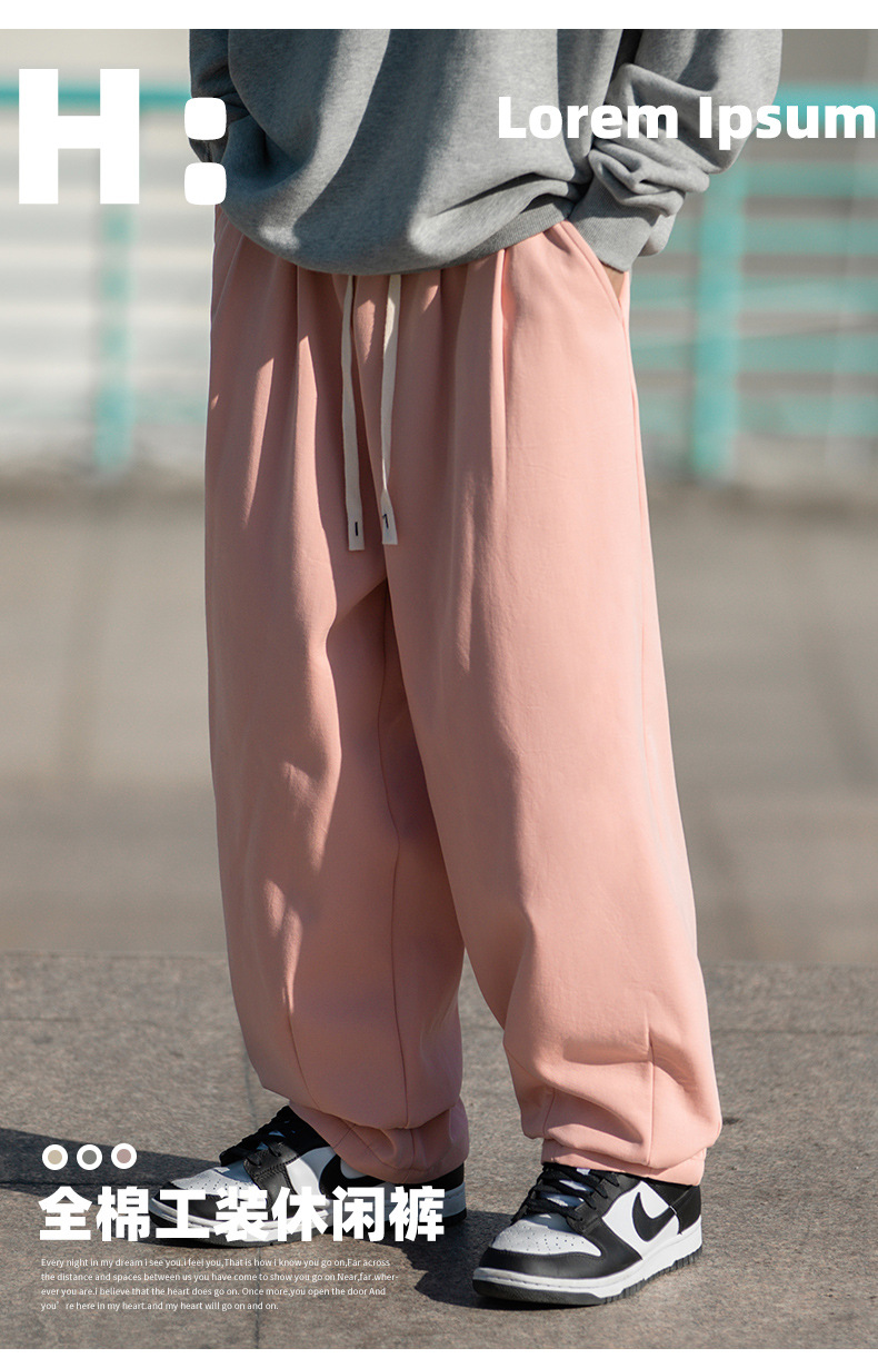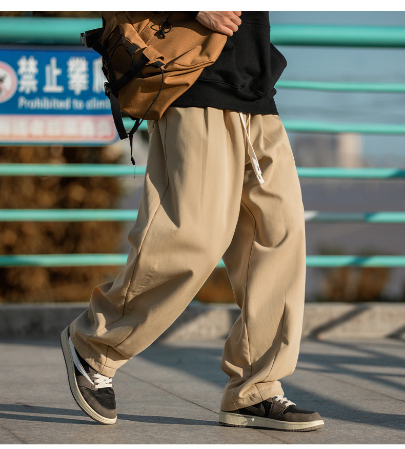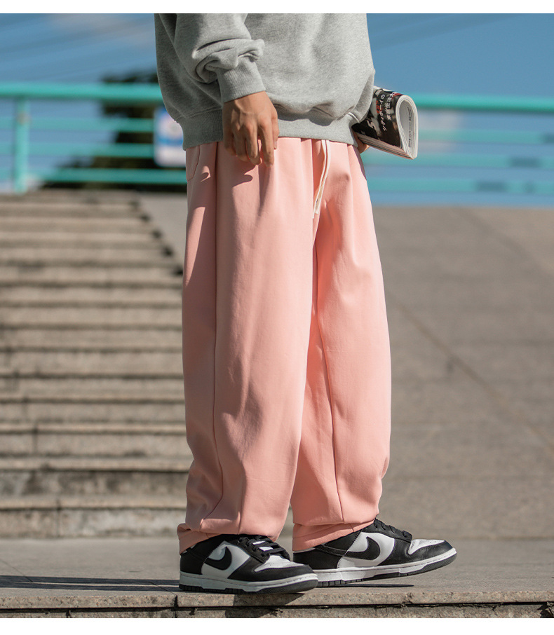 한루 남성복 기모 캐주얼 팬츠 남성 가을 신상 주름 디자인 긴바지 루즈핏 드로스트링 드레이프 스웨트팬츠