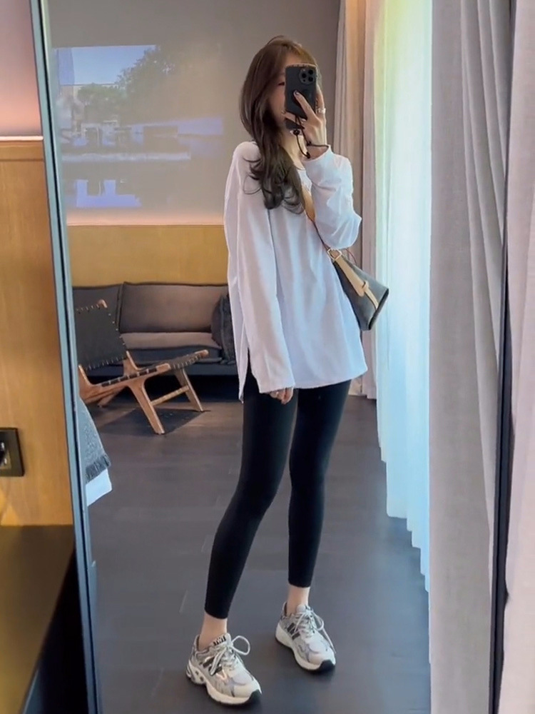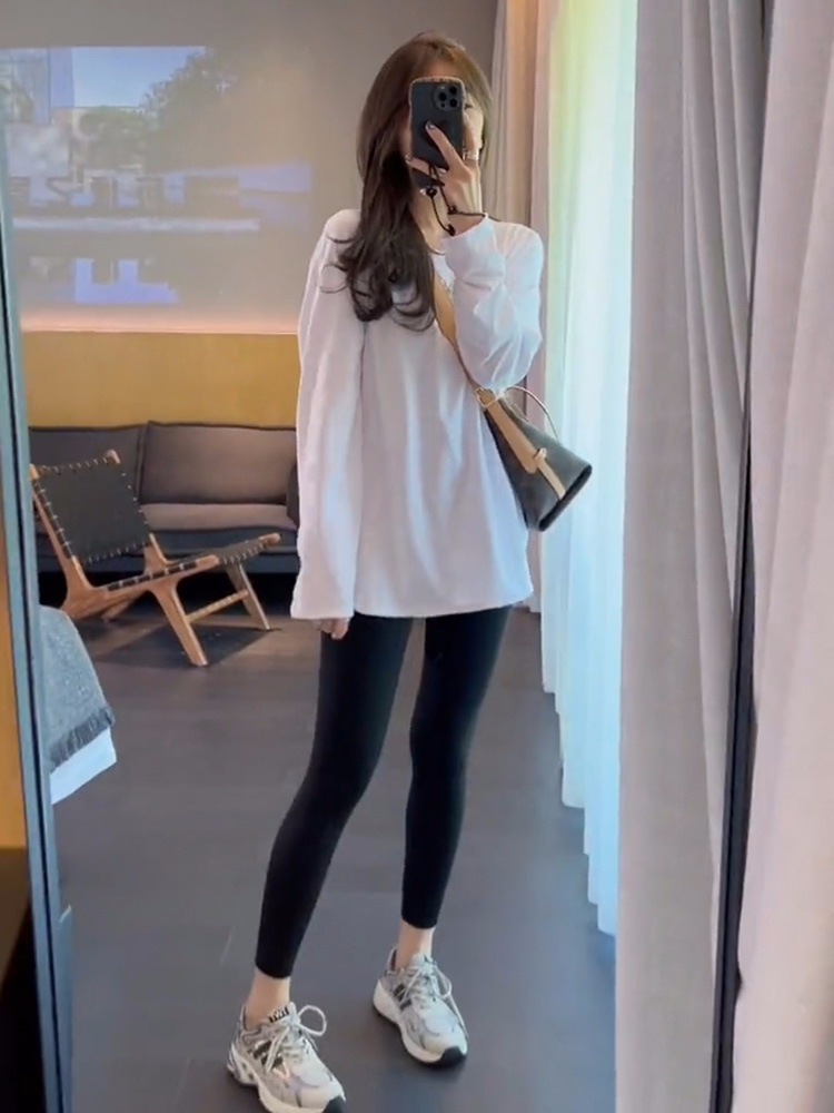 헤비 코튼 긴팔 티셔츠 여성용 화이트 샌딩 기모 두꺼운 베이스 셔츠 가을과 겨울 중간 길이 바닥 커버 탑